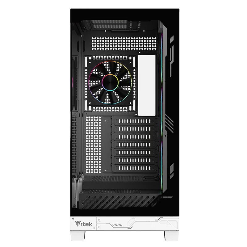 itek NEBRALUX 01 è un cabinet moderno, con tanto carattere e uno stile unico. Il doppio colore Black & White lo rende perfetto per assemblare componenti di entrambi i colori, a voi la scelta. La paratia frontale e laterale sono in vetro scuro temperato con apertura/chiusura ad incastro, senza viti! La struttura è solida e in grado di ospitare anche le nuove schede madri con connettori sul retro, per un effettivo visivo davvero super! Internamente lo spazio è tantissimo, infatti è possibile installare schede video di ultima generazione di lunghezza fino a 435mm, dissipatori alti 185mm, liquid cooling fino a 360mm, diverse ventole aggiuntive e il cable management è di 32mm. In dotazione sono presenti 4 ventole ARGB moderne per una resa estetica al top e un air flow ottimale; tutte gestite dal comodo HUB con telecomando e, in alternativa, dal tasto LED o direttamente dalla motherboard. Sono presenti 2 porte USB 3.0 e una TypeC nella parte superiore del case!