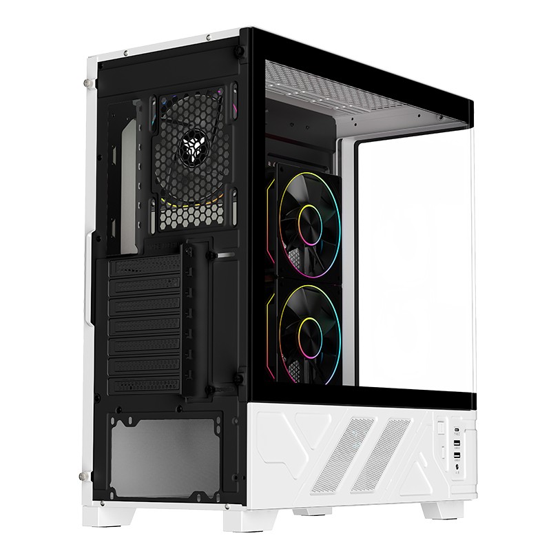 itek NETRON CURVED è un cabinet moderno, con tanto carattere e uno stile unico. E' dotato di un comodissimo display digitale per controllare la velocità delle ventole e la temperatura di CPU e GPU, installando il software che trovate sul sito web. Il doppio colore Black & White lo rende perfetto per assemblare componenti di entrambi i colori, a voi la scelta. La paratia frontale e laterale con design curvato sono in vetro scuro temperato ad incastro, senza viti! Internamente lo spazio è tantissimo, infatti è possibile installare schede video di ultima generazione di lunghezza fino a 410mm, dissipatori alti 170mm, liquid cooling fino a 360mm, diverse ventole aggiuntive e il cable management è di 27mm. In dotazione sono presenti 3 ventole ARGB moderne per una resa estetica al top e un air flow ottimale; tutte gestite dal comodo HUB con telecomando e, in alternativa, dal tasto LED o direttamente dalla motherboard. Sono presenti 2 porte USB 3.0 e una TypeC nella parte inferiore del case!