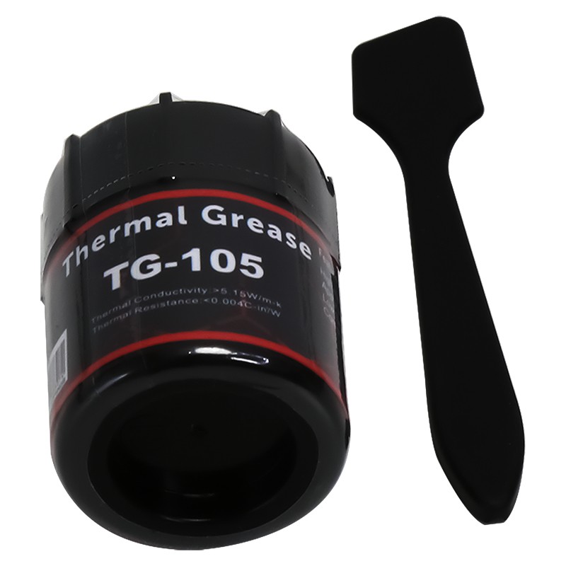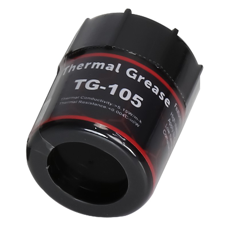 TG-105 è un barattolo contenente pasta termica dall'alta conduttività termica, da applicare a CPU e GPU per la miglior dissipazione del calore possibile. Formato da 10g e una spatola a corredo.