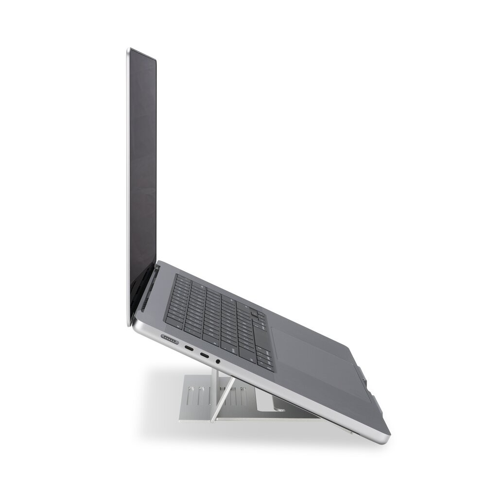 Grazie alla facilità di trasporto e alla scocca in alluminio, resistente, leggera e sostenibile, la basa per laptop regolabile in alluminio Easy Riser™ supporta praticamente tutti i laptop con dimensioni fino a 16 pollici e offre 6 livelli di regolazione in altezza/angolazione per consentire una visione ottimale. La ventilazione aperta migliora la circolazione dell'aria e il raffreddamento del laptop.