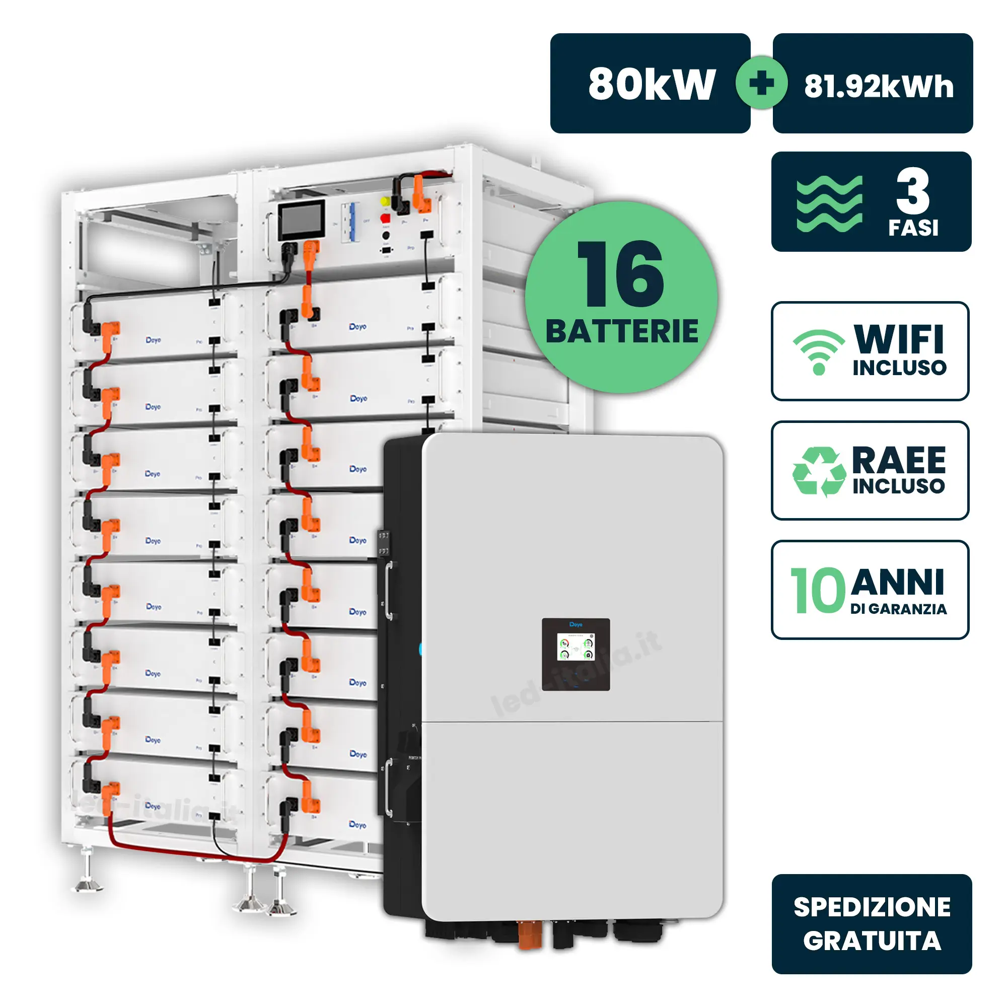 Kit Fotovoltaico Alta Tensione Trifase 80Kw + 82Kwh Inverter Ibrido Deye E Armadio Di Accumulo Lfp Wifi Ta Garanzia 10 Anni