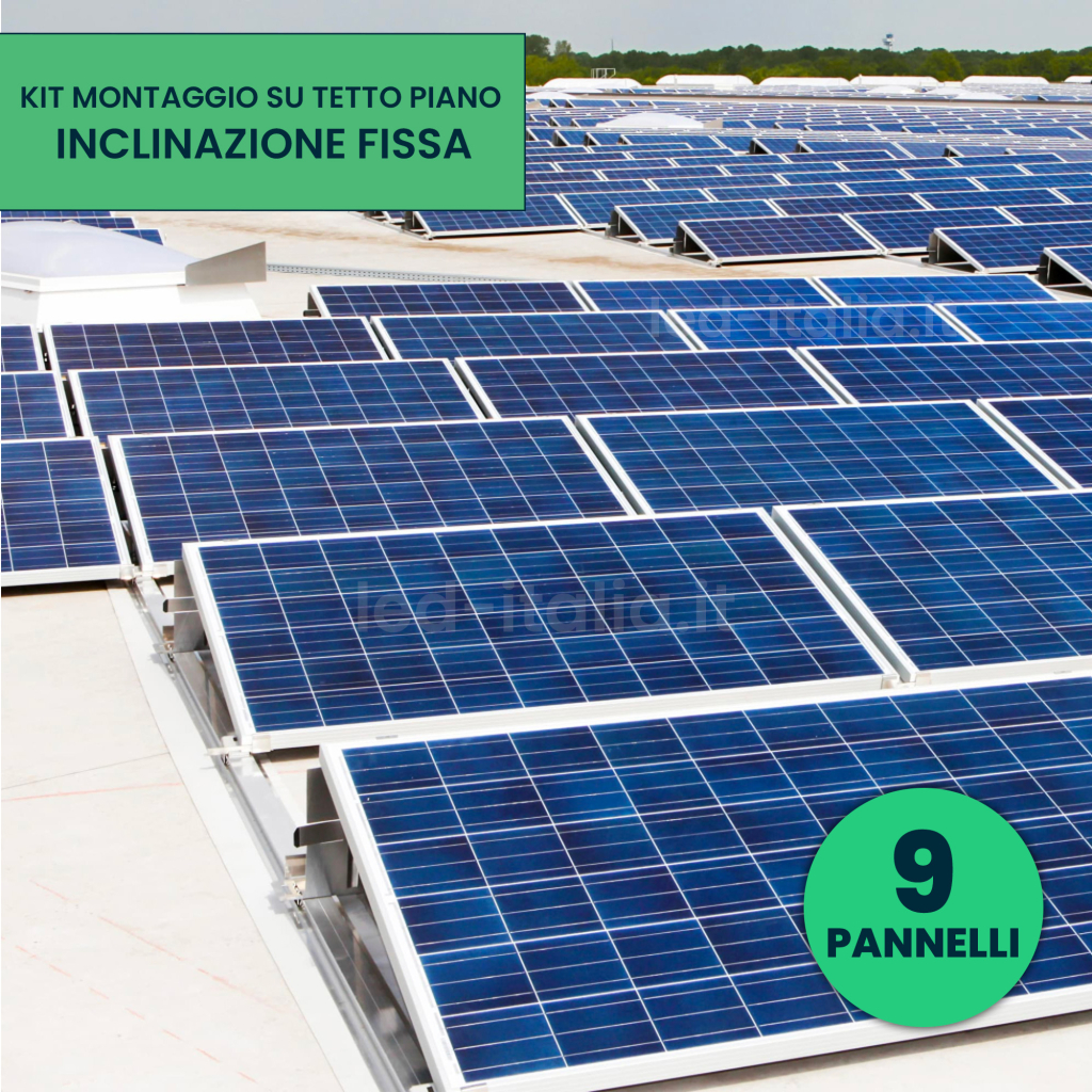 Kit Struttura In Alluminio Per Montaggio 9 Pannelli Fotovoltaici 35Mm Per Installazione Su Tetto Piano Con Inclinazione Fissa