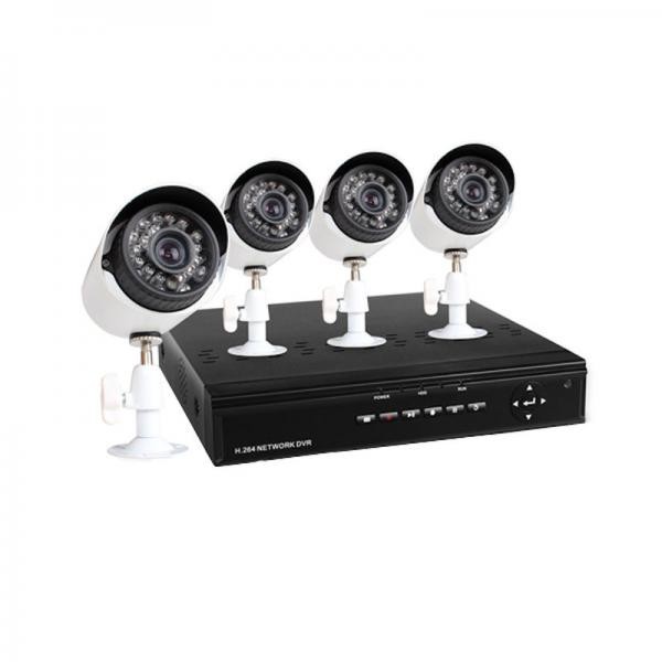 Nuovissimo ed utilissimo kit di videosorveglianza include tutto quello che serve per creare un'impianto completo e funzionale con una spesa ridotta. Quest' ottimo kit include tutto il necessario per installare un impianto di videosorveglianza: 4 telecamere, staffe, cavi prolunga, dvr a 4 canali H.264 ed alimentatori. Le telecamere hanno un sensore cmos da 3.6mm e possiedono 24 led IR per una perfetta visione notturna. Il dvr è da 4 canali, possiede standard di compressione video h.264, supporta hd sata da massimo 500 GB (NON incluso), collegamento lan, due porte usb per controllo tramite mouse e backup su dispositivi di memoria usb, un'uscita video BNC ed una VGA, un canale audio e rs 485, telecomando e mouse per una gestione semplice e veloce.