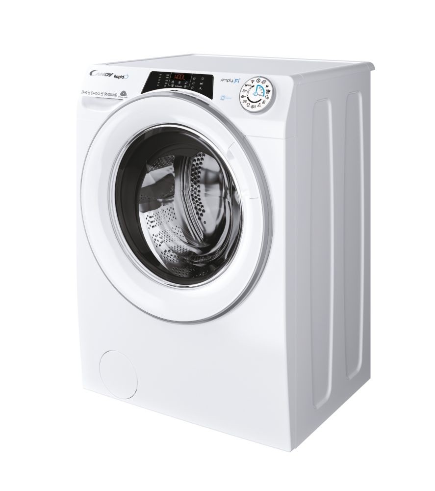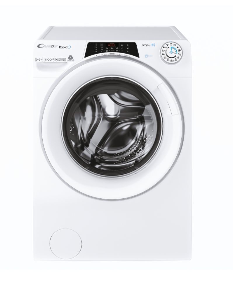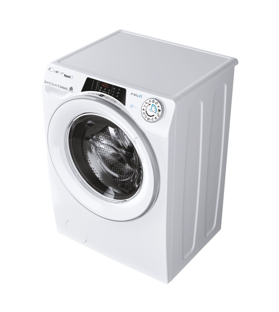 Candy RapidÓ ROW4964DWMSE/1-S. Tipo di carica: Caricamento frontale, Posizionamento dell'apparecchio: Libera installazione, Colore del prodotto: Bianco. Capacità di asciugatura: 6 kg, Velocità di centrifuga massima: 1400 Giri/min, Classe di efficienza della centrifuga: B. Classe di efficienza energetica (lavaggio): A, Classe di efficienza energetica( lavaggio e asciugatura): D, Consumo di acqua (lavaggio): 49 L. Profondità: 580 mm, Larghezza: 600 mm, Altezza: 850 mm