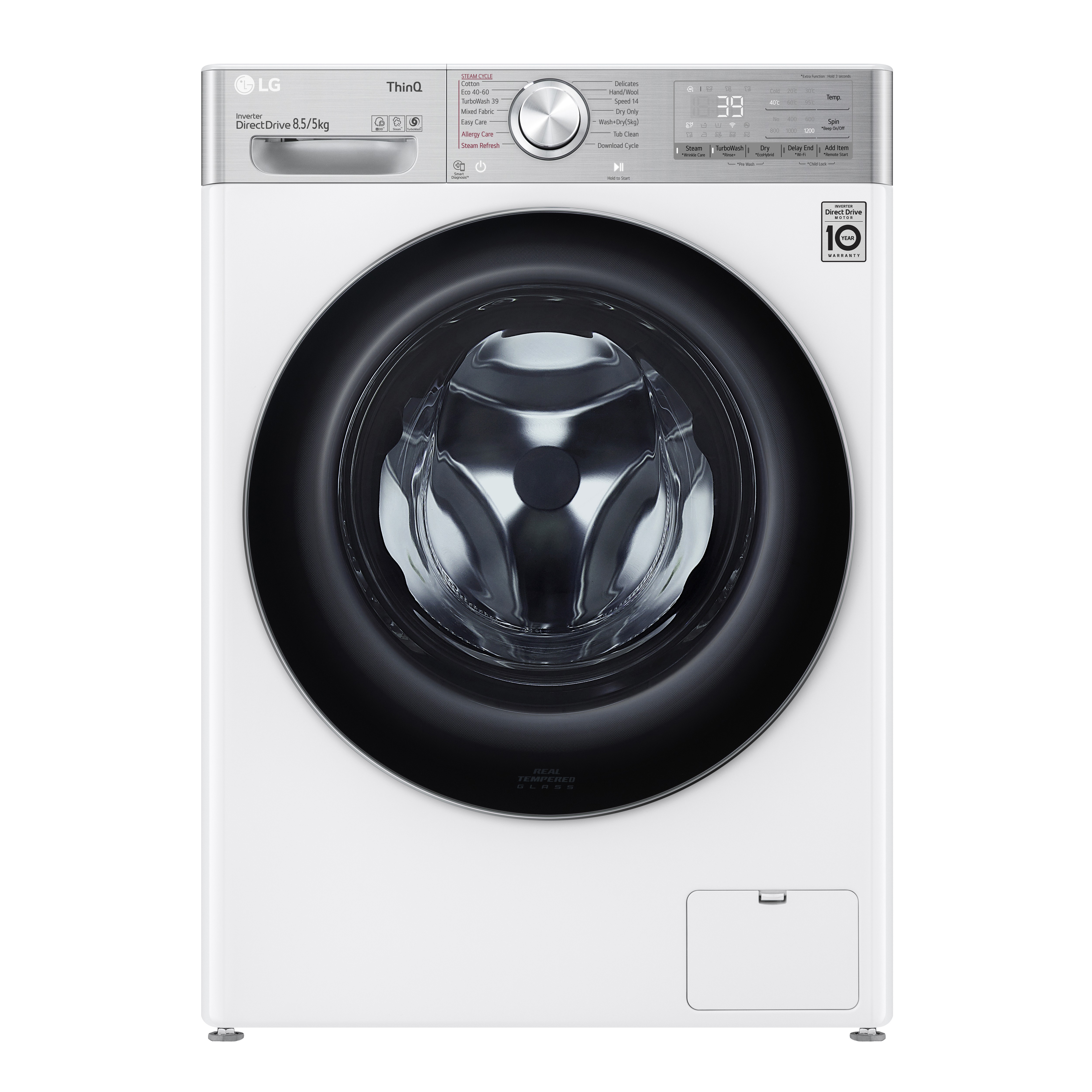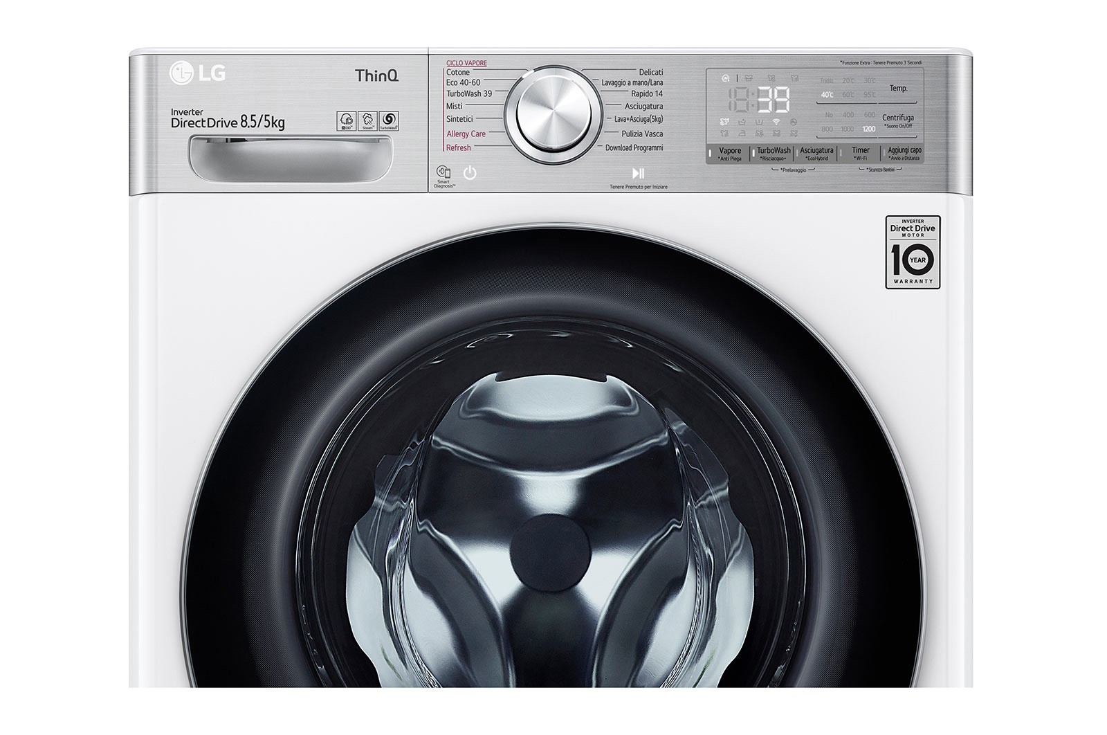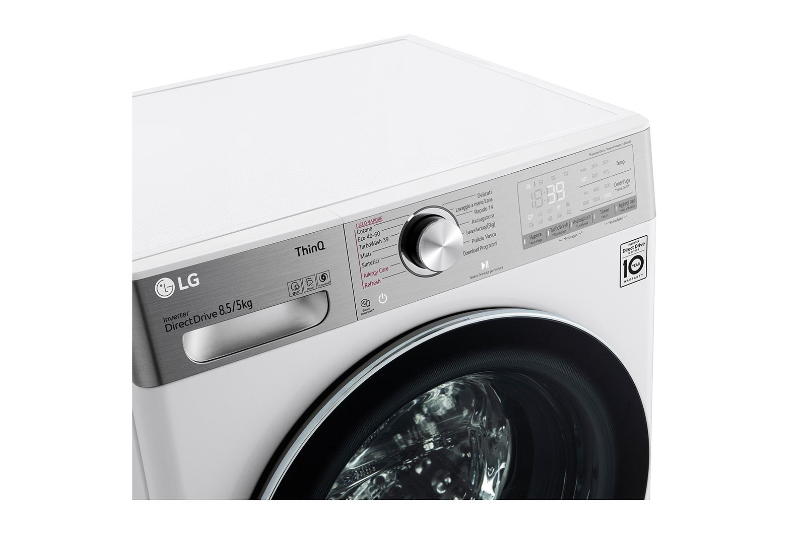 LG F2DV9S8H2E Lavasciuga Slim Intelligente AIDD 8.5/5kg Vapore TurboWash 360 1200 Giri/min Carica frontale Classe E, Caricamento frontale, Libera installazione, Bianco, Sinistra, Pulsanti, Manopola, LED