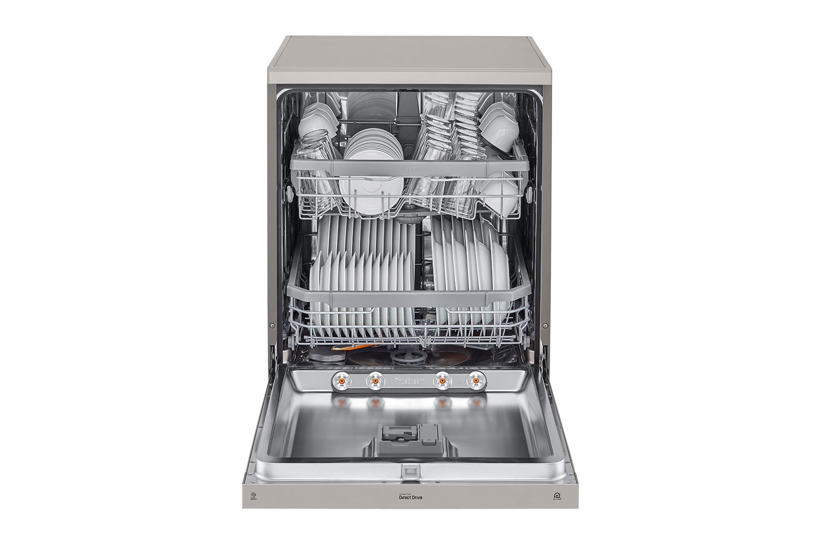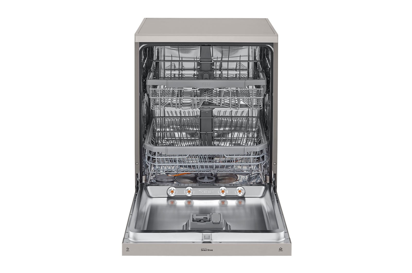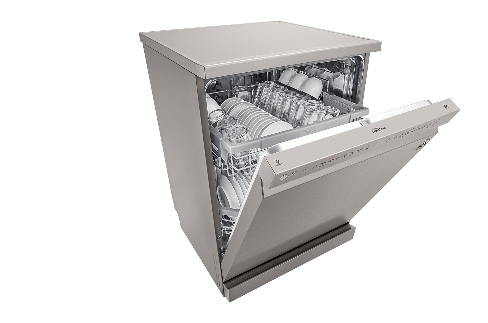 LG DF222FPS. Posizionamento dell'apparecchio: Libera installazione, Dimensione: Dimensione massima (60 cm), Colore della porta: Acciaio inossidabile. Numero di coperti: 14 coperti, Classe emissione rumore: C, Emissione acustica: 46 dB. Classe efficienza energetica: E, Consumo di acqua per ciclo: 9,9 L, Consumo energetico per 100 cicli: 95 kWh. Larghezza: 600 mm, Profondità: 600 mm, Altezza: 850 mm