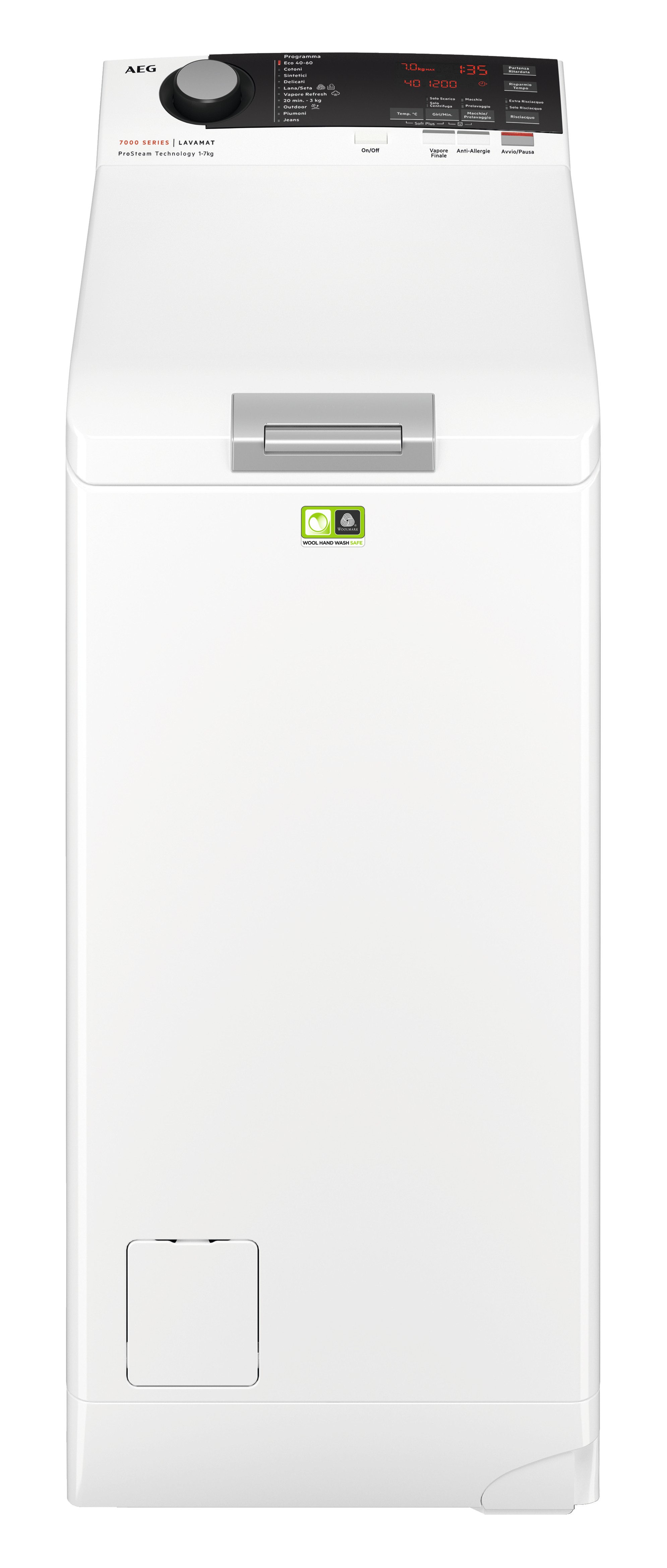 AEG L7TBE734. Tipo di carica: Caricamento dall'alto. Capacità cestello: 7 kg, Classe di efficienza della centrifuga: B, Silenziosità (centrifuga): 78 dB, Velocità di centrifuga massima: 1151 Giri/min. Colore del prodotto: Bianco. Larghezza: 400 mm, Profondità: 600 mm, Altezza: 890 mm. Classe efficienza energetica: C