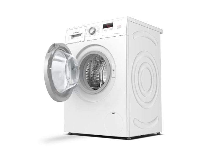 Bosch Serie 2 . Tipo di carica: Caricamento frontale. Capacità cestello: 7 kg, Classe di efficienza della centrifuga: C, Silenziosità (centrifuga): 72 dB, Silenziosità (lavaggio): 52 dB, Velocità di centrifuga massima: 1000 Giri/min. Colore del prodotto: Bianco. Larghezza: 598 mm, Profondità: 546 mm, Altezza: 848 mm. Classe efficienza energetica: D