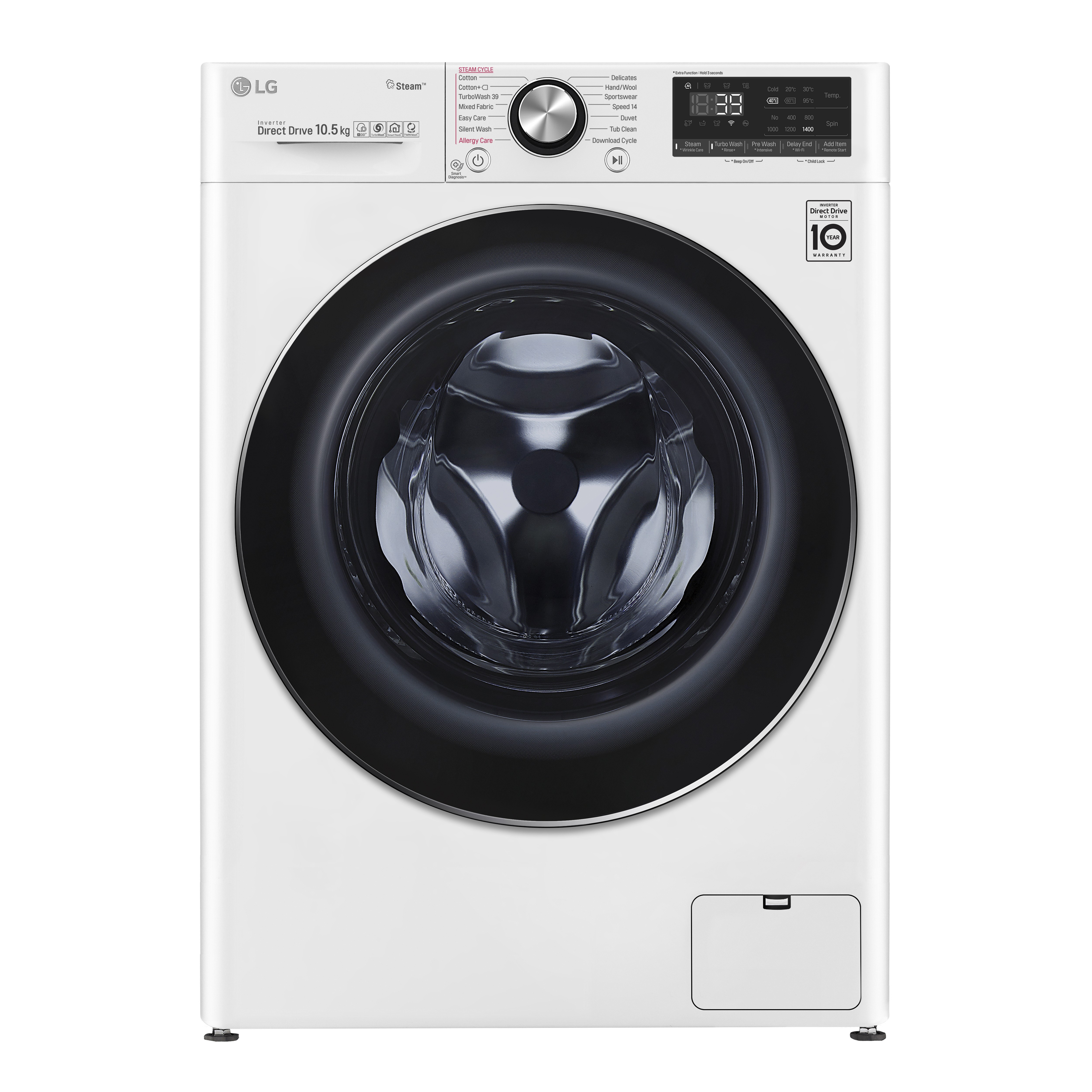 LG F4WV910P2, Caricamento frontale, 10,5 kg, 71 dB, 1400 Giri/min, A+++-50%, 125 kWh