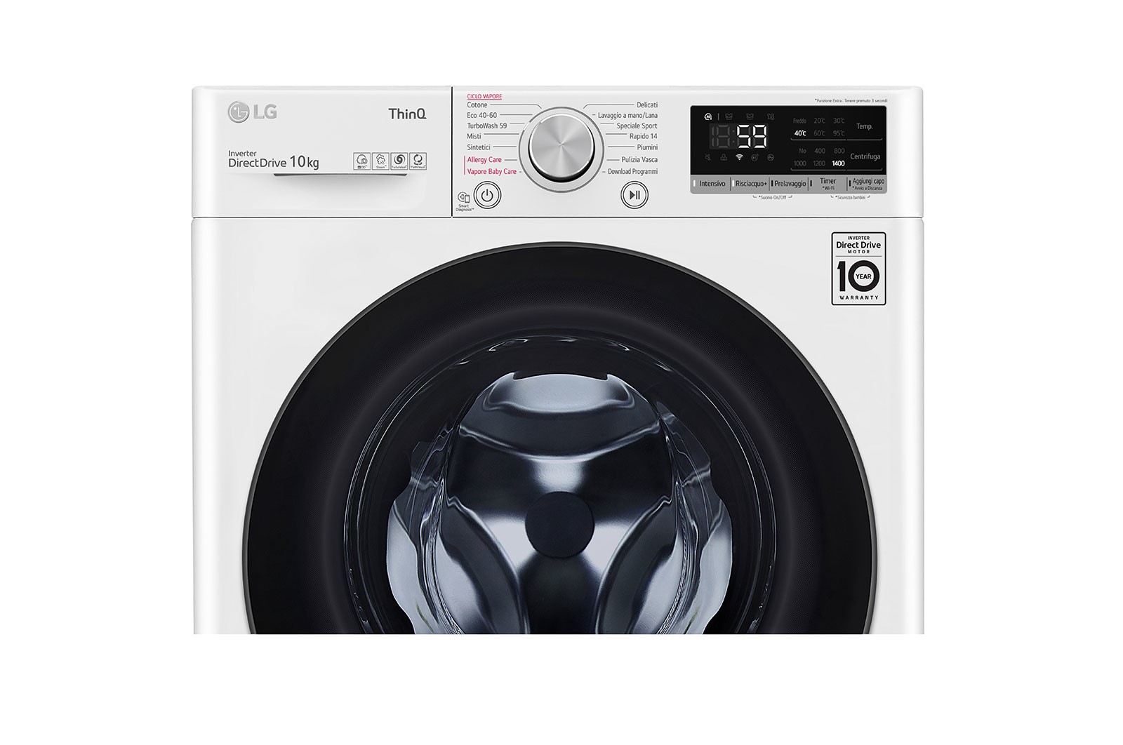 Efficienza energetica Leader nell'efficienza energetica Con la tecnologia TurboWash™ 360 raggiungi la classe energetica A*, la più efficiente secondo la scala energetica UE (da A a G) AI DD™ Lavaggi intelligenti, 18% in più cura dei tessuti Grazie a 20.000 combinazioni di lavaggio possibili, AI DD™ è in grado di scegliere il lavaggio perfetto per prendersi sempre la massima cura del tuo bucato.. Cos'è AI DD™? AI DD™ non si limita a rilevare il peso, ma identifica anche la tipologia di tessuti e sceglie autonomamente i movimenti ottimali per ogni lavaggio. TurboWash™ Lavaggi più rapidi e più tempo per te La tecnologia TurboWash™ lava i tuoi capi più velocemente*. JetSpray spruzza acqua del rubinetto pulita sui tuoi abiti, migliorando più che mai l'efficienza dei cicli di risciacquo. Steam™ Allergy care La tecnologia LG Steam™ elimina il 99,9% degli allergeni responsabili di allergie e problemi respiratori. Cestello extra carico Più spazio per i tuoi capi Stesse dimensioni cestello più grande. Affidabilità Più affidabile e igienica Ampio oblò in vetro temperato resistente ed elegante e agitatori in acciaio inox igienici e duraturi. Design Più visibile ed elegante Un display più visibile e una manopola più grande con finitura in metallo. ThinQ™ Lavatrice Smart Con la tecnologia ThinQ™, la tua lavatrice è ancora più intelligente: dalla gestione a distanza del bucato alla possibilità di scaricare nuovi cicli di lavaggio. Interagisci con lei e sfrutta le ultime innovazioni con la connettività Wi-Fi.