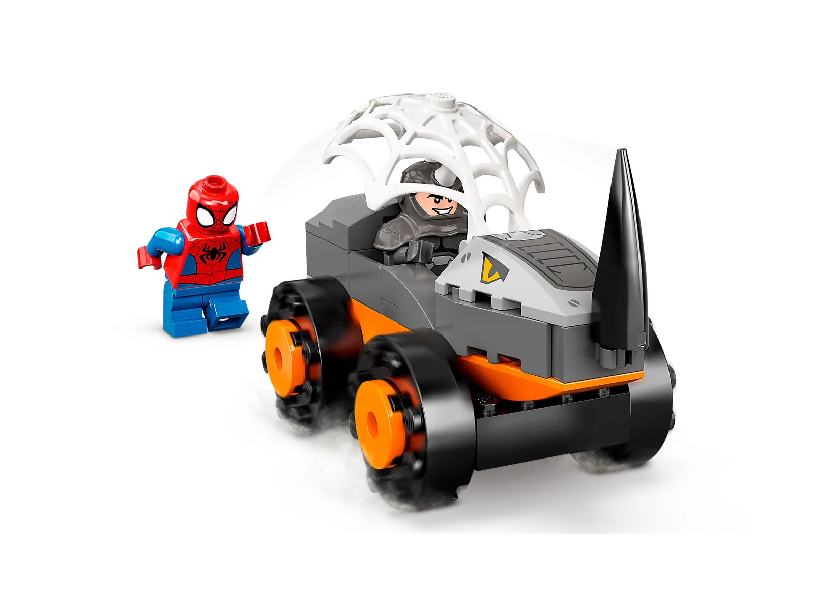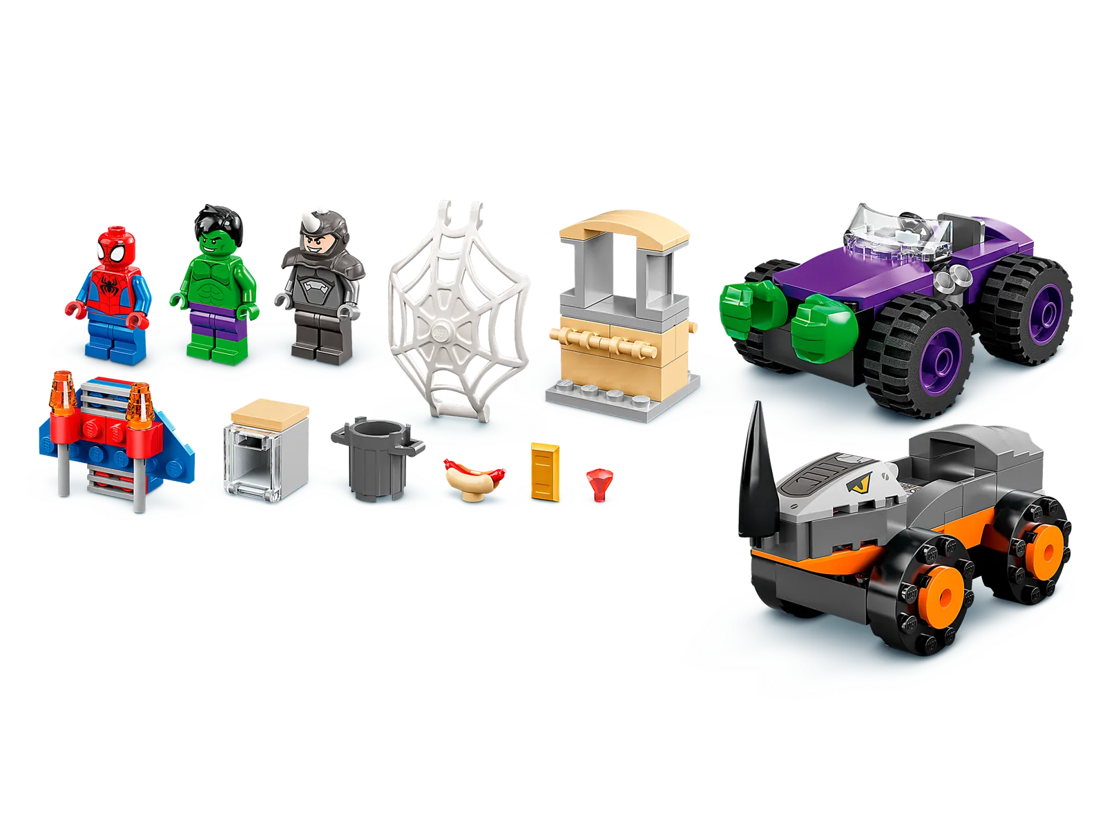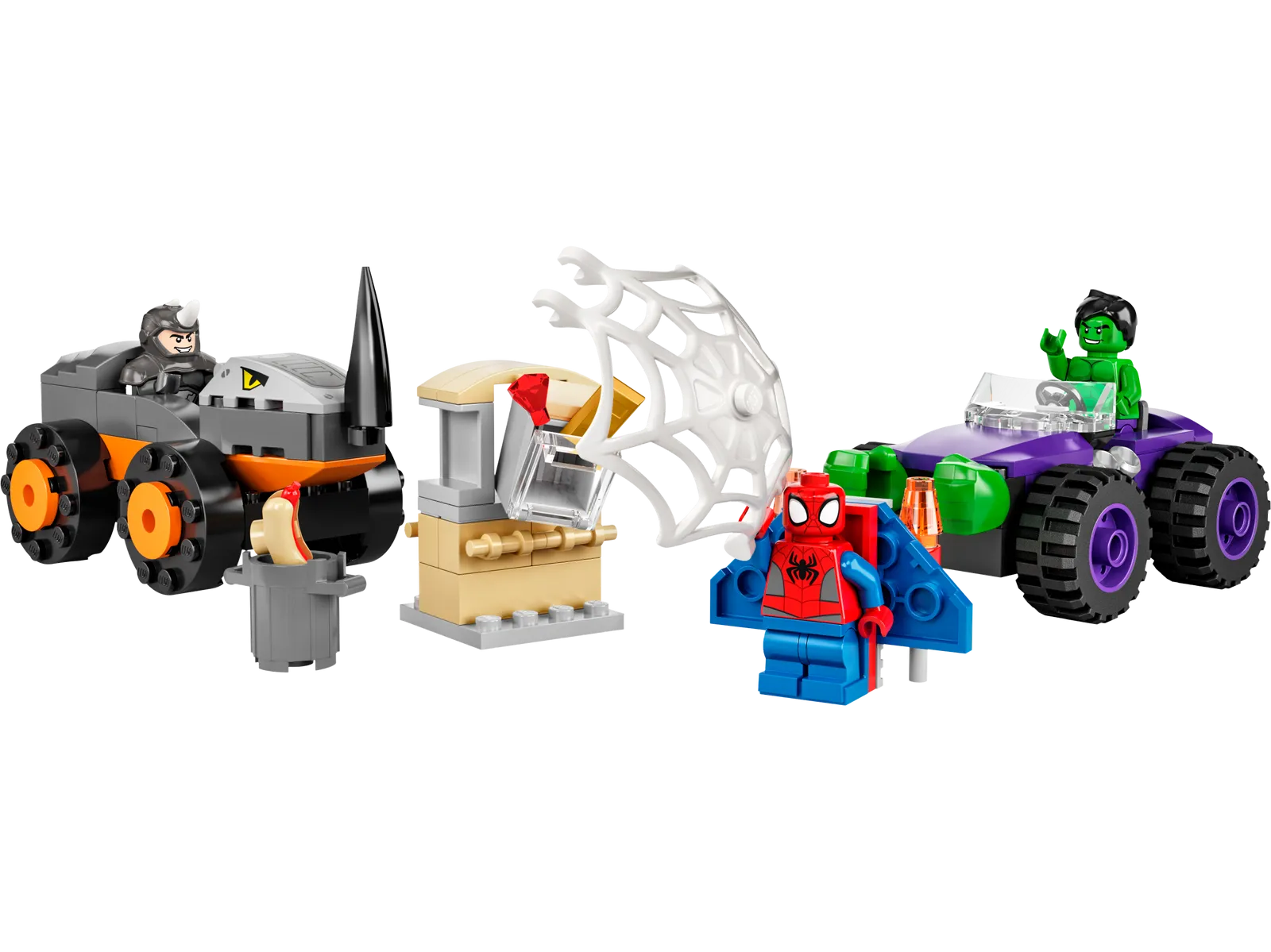 - Spidey e Hulk bloccano Rhino: bambini e adulti ameranno inscenare epici combattimenti tra questi due mostruosi veicoli, mentre Spidey vola per avvolgere Rhino nella sua rete e salvare la città