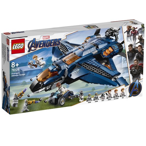 - Il modello dell’Ultimate Quinjet Marvel è dotato di cabina di pilotaggio apribile, 2 shooter, cabina passeggeri apribile con 2 sedili per minifigure e porta-armi, compartimento posteriore apribile con shooter a fuoco rapido a 6 colpi apribile e trike, ali regolabili e rotori funzionanti
