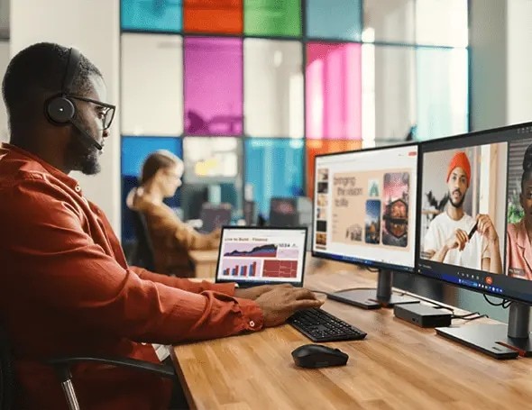 Metti fine ai problemi di comunicazione con le cuffie VoIP wireless Lenovo. Certificate per Microsoft Teams Open Office e ottimizzate per piattaforme UC, queste cuffie offrono una qualità vocale eccezionale e ti permettono di essere sempre ascoltato forte e chiaro durante le chiamate.