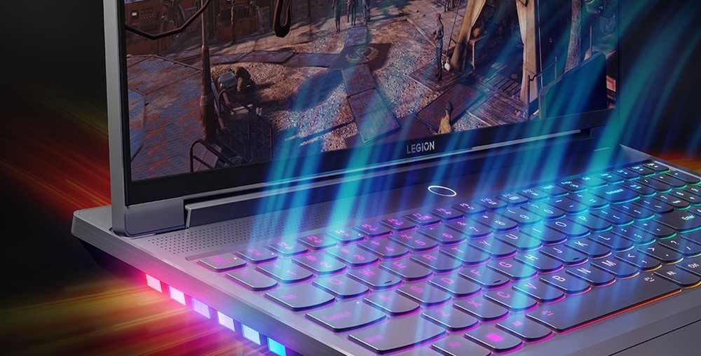 Legion Coldfront 4.0 e tecnologia a camera di vapore, con supporto per una capacità termica della GPU fino a 175 W. Questa tecnologia di raffreddamento include un'interfaccia termica a cambio di fase e un sistema di ventole più potente del 20%, con pale in polimeri a cristalli liquidi notevolmente più sottili ed estremamente silenziose. I numerosi fori di aspirazione posizionati con precisione e le porte dislocate su tutta la superficie del notebook migliorano il flusso d'aria e ottimizzano il raffreddamento.