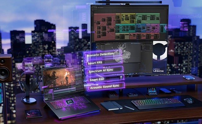 L'ecosistema Legion offre un design unificato su PC, palmari, tablet, monitor e software per un'esperienza senza interruzioni. Legion Space aggiunge funzionalità di IA in evoluzione per una creatività e un gioco migliorati. Goditi la compatibilità pronta all'uso con gli aggiornamenti dei driver, garantendo prestazioni affidabili per gli anni a venire.