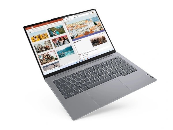 Oltre all'elegante chassis di alluminio in Arctic Grey, il notebook ThinkBook 14 di sesta generazione presenta una tastiera riprogettata per un'ergonomia ancora migliore. Realizzati in plastica riciclata post-consumo, i tasti sono inoltre più grandi rispetto alle generazioni precedenti e includono un cappuccio concavo che si adatta alla punta delle dita. Il touchpad esteso offre una navigazione semplice e fluida. Personalizza il tasto smart F9 in modo che apra le app usate più di frequente oppure mantieni la sua funzione predefinita, che collega direttamente alla nostra pagina dei servizi.