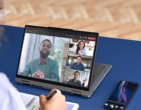 Versatile e portatile, questo elegante laptop convertibile ThinkBook in metallo ti consente di lavorare a modo tuo, ovunque. È inoltre dotato di una cerniera a 360 gradi e un supporto opzionale per penna, per adattarsi perfettamente alle tue esigenze di lavoro, dal prendere appunti alla presentazione.
