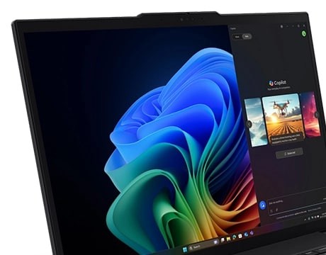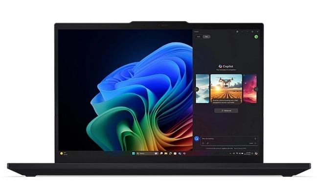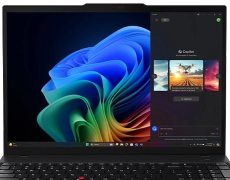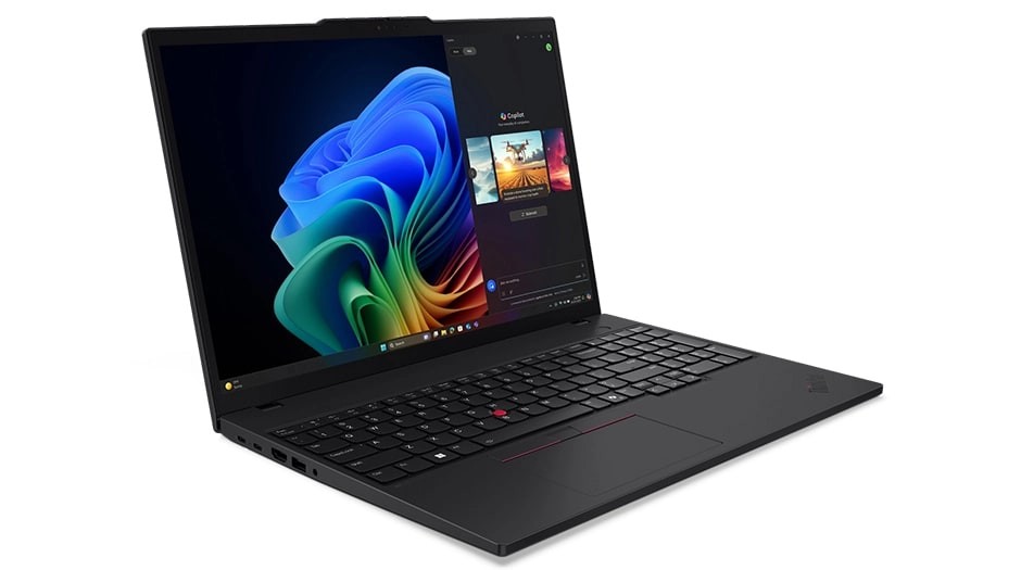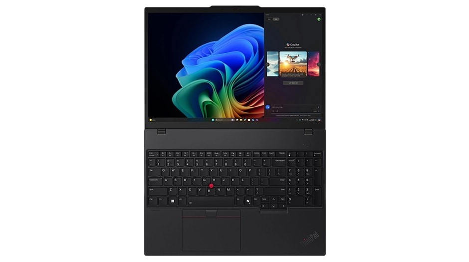La tastiera resistente al versamento di liquidi include marcature tattili per un facile riconoscimento dei tasti e un ampio TrackPad per un controllo maggiore. Toccando due volte il TrackPoint si attiva un menu rapido delle impostazioni personalizzabili. E un tasto dedicato avvia Copilot.