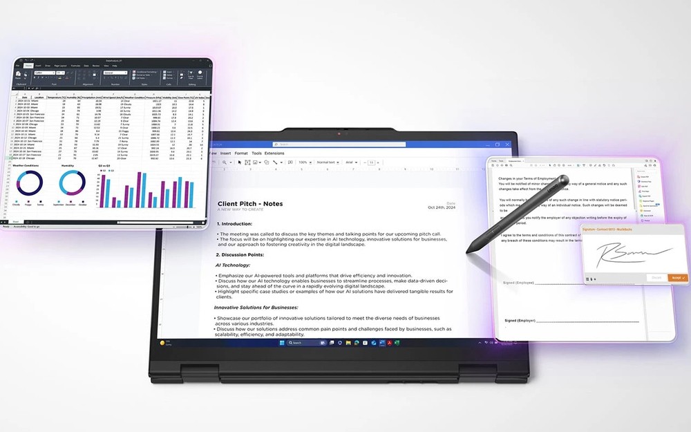 Nuestra primera laptop 2 en 1 Serie T con excelente rendimiento de IA para optimizar la productividad de tu negocio.- Laptop 2 en 1 de 14" con pantalla táctil y tecnología de IA diseñada para optimizar la productividad