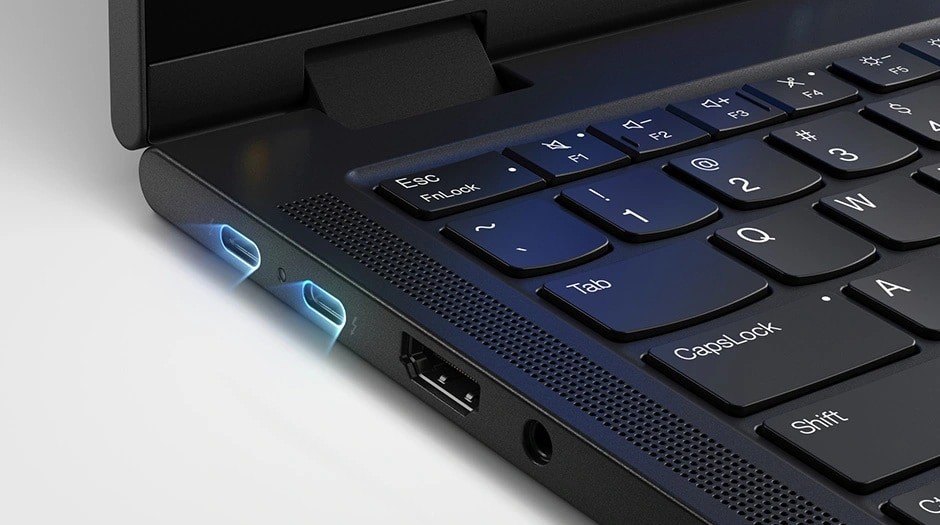 Trasferisci file in un attimo. Oppure connettiti a una DisplayPort. Il ThinkPad T14s 2-in-1 vanta due porte Thunderbolt™ sulla sinistra, mentre le due porte USB sulla destra aiutano a risolvere i problemi di connettività. Ricarica i dispositivi. Connetti un monitor. Collega delle cuffie.