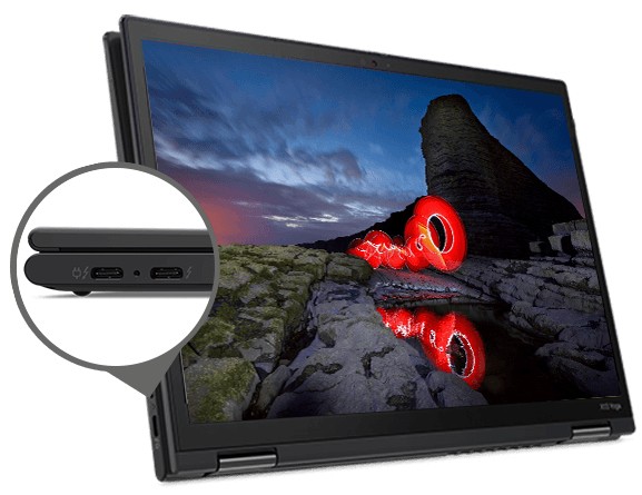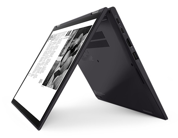 Mobilità in più modalità Il modello 2-in-1 ThinkPad X13 Yoga Gen 2 (13" Intel) è sottile e leggero, con durata della batteria di un'intera giornata e connettività LTE opzionale, per la massima mobilità. Il processore Intel® Core™ vPro® di undicesima generazione con scheda grafica Iris® Xe supporta memoria RAM LPDDR4x fino a 32 GB per velocità e prestazioni elevate. La cerniera con rotazione a 360° ti permette di sfruttare questa potenza in quattro flessibili modalità, mentre la penna con alloggiamento all'interno del dispositivo offre interazione avanzata qualunque sia la modalità che preferisci.