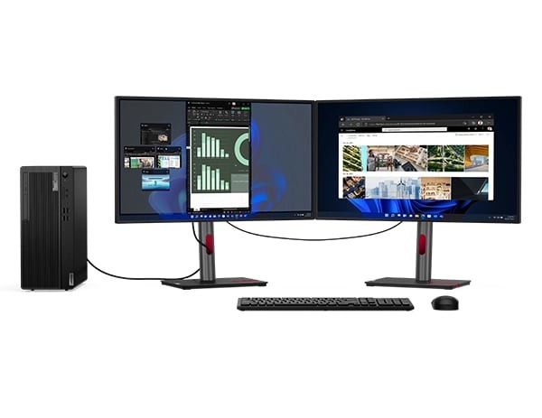Il Tower ThinkCentre M70t di quarta generazione (Intel) è dotato di numerose porte I/O e di slot di espansione flessibili per rispondere a ogni esigenza man mano che l'azienda cresce. La collaborazione tra i dispositivi è innovativa: con il cavo smart la connessione di tipo USB-A e USB-C è ancora più semplice, per collegare tutte le periferiche e persino un altro notebook o tablet. L'unità di storage SSD opzionale garantisce velocità e reattività, mentre la tecnologia 3D NAND conferisce all'unità SSD prestazioni più affidabili e una maggiore efficienza energetica.