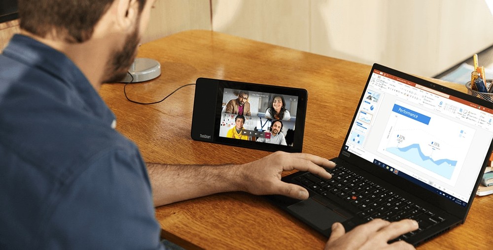 La collaborazione è più semplice che mai con ThinkSmart View Teams Display, ottimizzato per il controllo vocale. Usalo per partecipare a chiamate vocali e videochiamate senza alcun impatto sulle attività che stai svolgendo al PC. Darai vita a riunioni più avanzate e ricche di contenuti e potrai immergerti in suoni cristallini con impostazioni private e potenti microfoni e altoparlanti integrati. In alternativa, puoi usarlo in pubblico con le cuffie ThinkPad X1 con tecnologia di cancellazione dei rumori attiva.