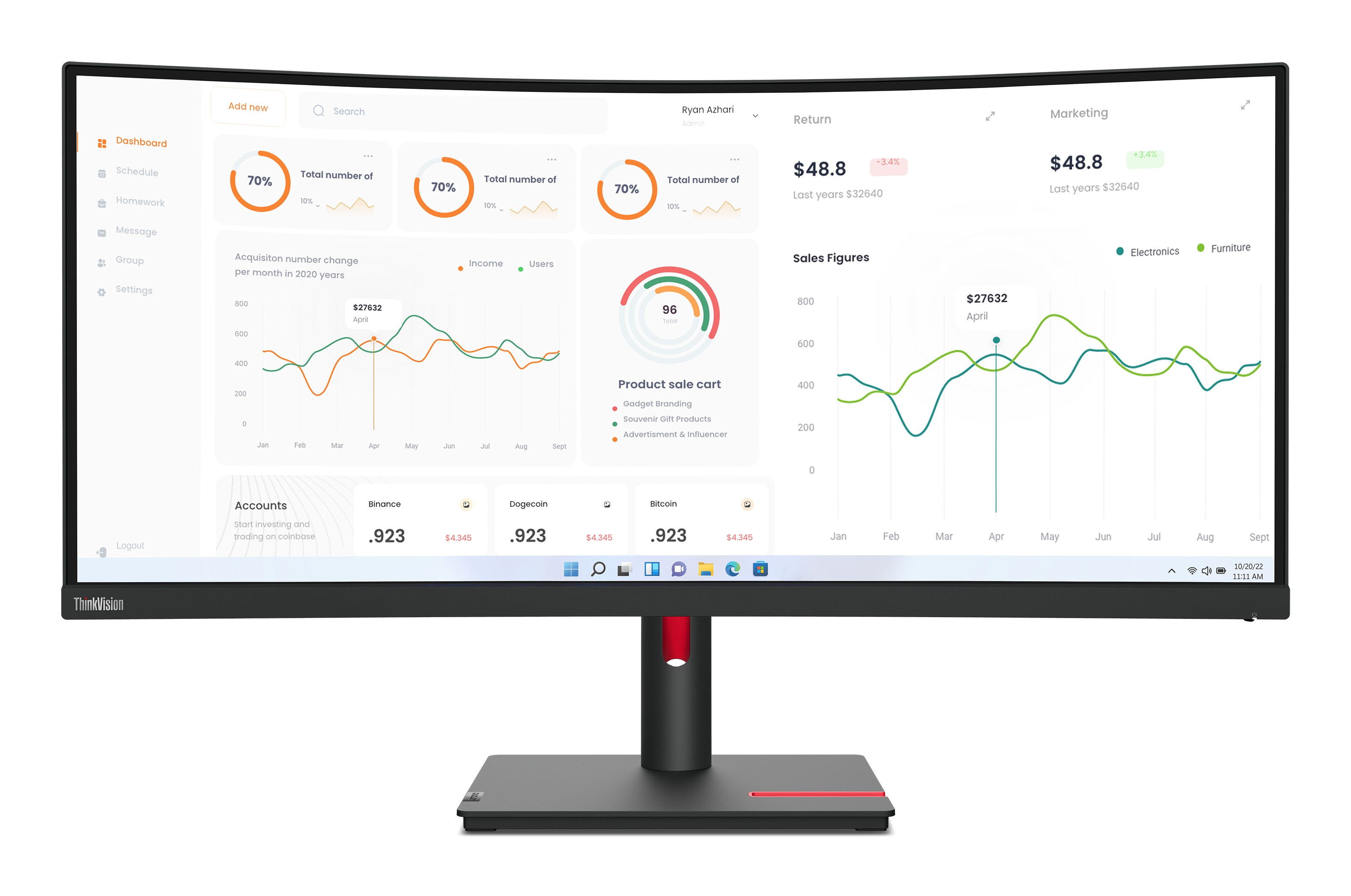 Lenovo ThinkVision T34w-30, 86,4 cm (34"), 3440 x 1440 Pixel, Wide Quad HD, LED, 6 ms, Nero