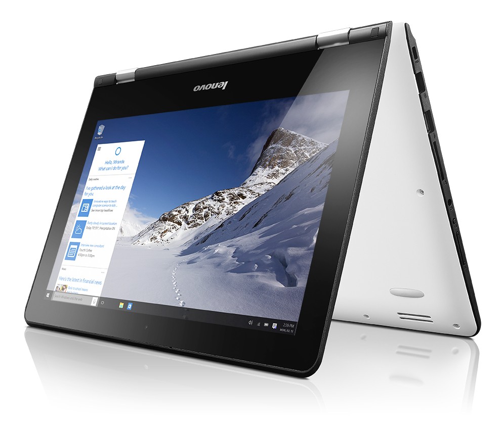 Lenovo Yoga 300-11IBR. Colore del prodotto: Bianco, Tipo di prodotto: Computer portatile, Fattore di forma: Convertibile (rimovibile). Frequenza del processore: 1,6 GHz, Famiglia processore: Intel® Celeron®, Modello del processore: N3060. RAM installata: 4 GB, Tipo di RAM: DDR3L-SDRAM, RAM massima supportata: 8 GB. Capacità totale hard disk: 500 GB, Supporto di memoria: HDD, Capacità hard disk: 500 GB. Dimensioni schermo: 29,5 cm (11.6"), Risoluzione del display: 1366 x 768 Pixel, Tipologia HD: HD