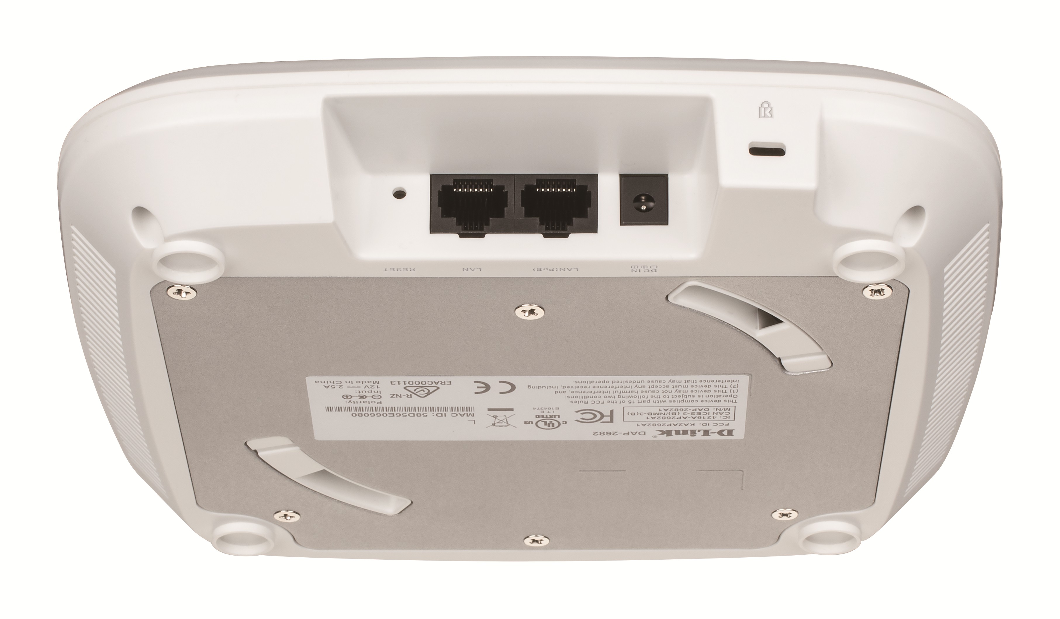 D-Link AC2300. Velocità massima di trasferimento dati: 1700 Mbit/s, Velocità massima di trasferimento dati (2,4 GHz): 600 Mbit/s, Velocità massima di trasferimento dati (5 GHz): 1700 Mbit/s. Algoritmi di sicurezza supportati: 64-bit WEP, 128-bit WEP, WPA2, Funzioni SSID (Service Set Identifier): Trasmissione SSID. Protocolli di gestione: Telnet, SSH. Tensione di ingresso AC: 12 V, Corrente d'ingresso: 2.5 A, Consumo energetico (max): 15,5 W. Installazione: Soffitto, Parete, Colore del prodotto: Bianco, Indicatori LED: Potenza, status