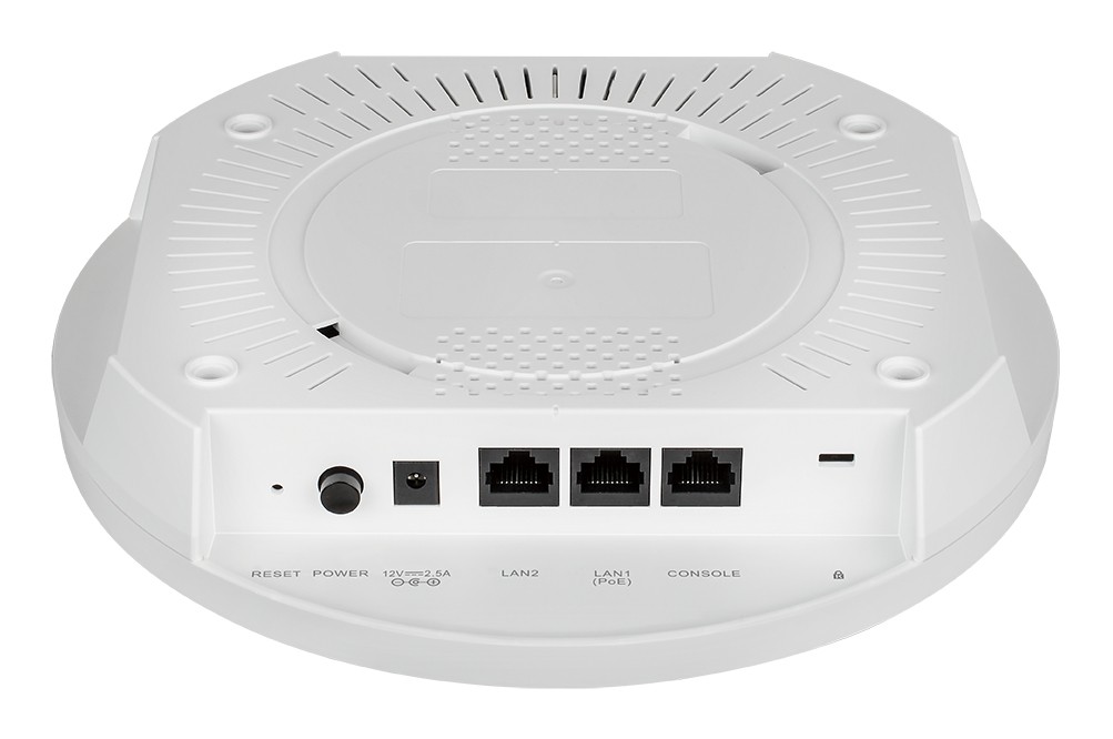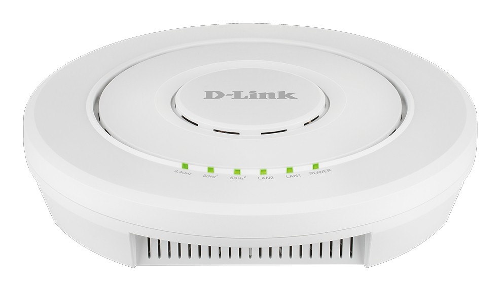 D-Link DWL-7620AP. Velocità massima di trasferimento dati: 2200 Mbit/s, Velocità trasferimento Ethernet LAN: 10,100,1000 Mbit/s, Banda di frequenza: 2.4 - 2.4835; 5.15 - 5.85 GHz. Algoritmi di sicurezza supportati: AES, SNMP, SNMPv3, TKIP, WPA, WPA-Enterprise, WPA2, WPA2-Enterprise. Voltaggio di uscita: 12 V, Corrente d'uscita: 2,5 A, Consumo energetico (max): 20 W. Installazione: Tavolo, Parete, Colore del prodotto: Bianco, Materiale della scocca: Plastica. Livello di guadagno dell'antenna (max): 4 dBi