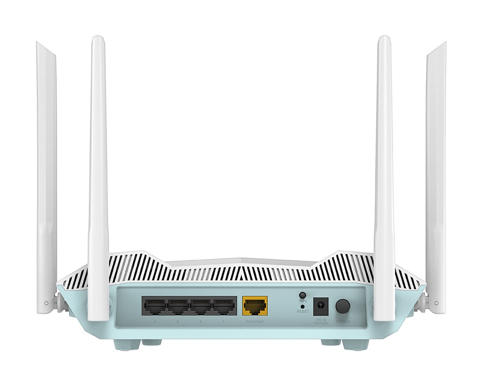 D-Link R32/E. Tipo di connessione WAN: RJ-45. Banda Wi-Fi: Dual-band (2.4 GHz/5 GHz), Wi-Fi standard: Wi-Fi 6 (802.11ax), Intervallo di trasferimento dei dati WLAN (max): 2402 Mbit/s. Tipo di interfaccia LAN Ethernet: Gigabit Ethernet, Velocità trasferimento Ethernet LAN: 10,100,1000 Mbit/s, Tecnologia di cablaggio: 10/100/1000Base-T(X). Algoritmi di sicurezza supportati: WPA, WPA2, WPA3. Tipo di prodotto: Router da tavolo/palo, Colore del prodotto: Bianco, Indicatori LED: LAN, Potenza, WLAN