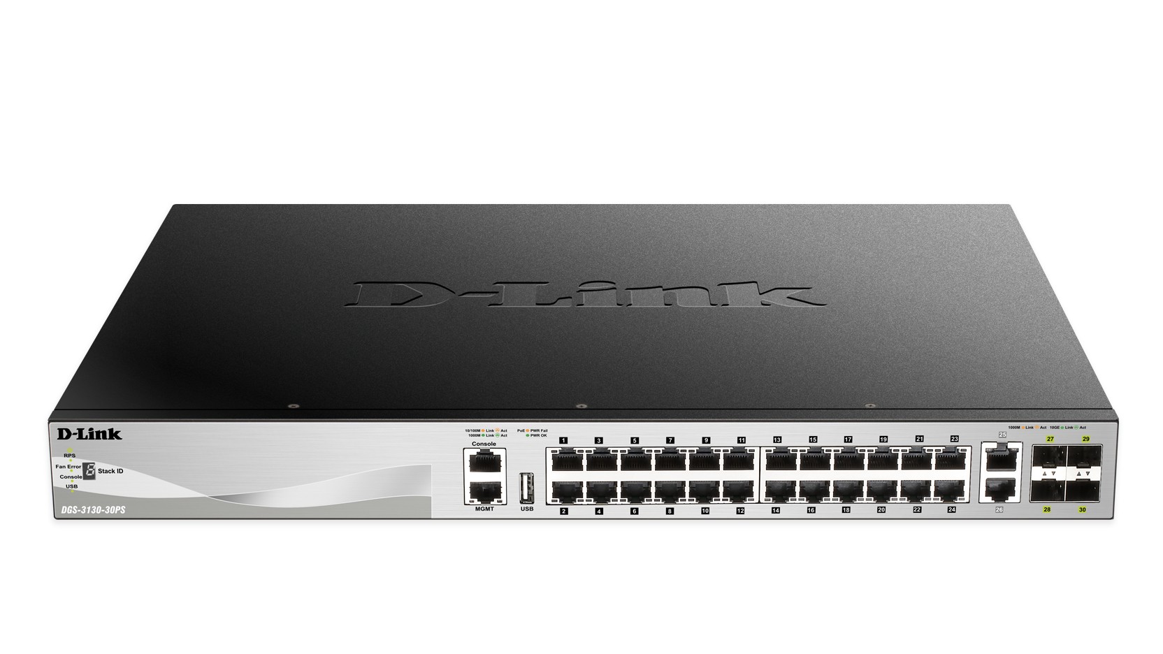 D-Link DGS-3130-30PS, Gestito, L3, Gigabit Ethernet (10/100/1000), Supporto Power over Ethernet (PoE), Montaggio rack