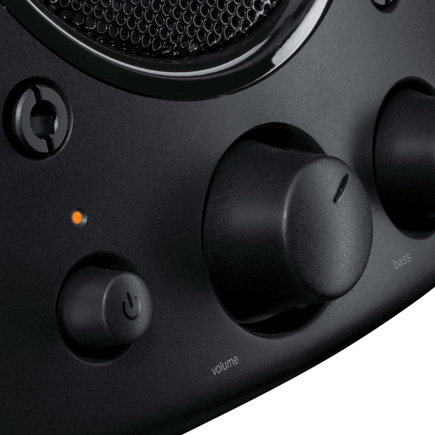 Accedi in tutta semplicità a controlli per accensione, volume e bassi, alla presa per cuffie e ai connettori ausiliari dall'altoparlante satellite destro.