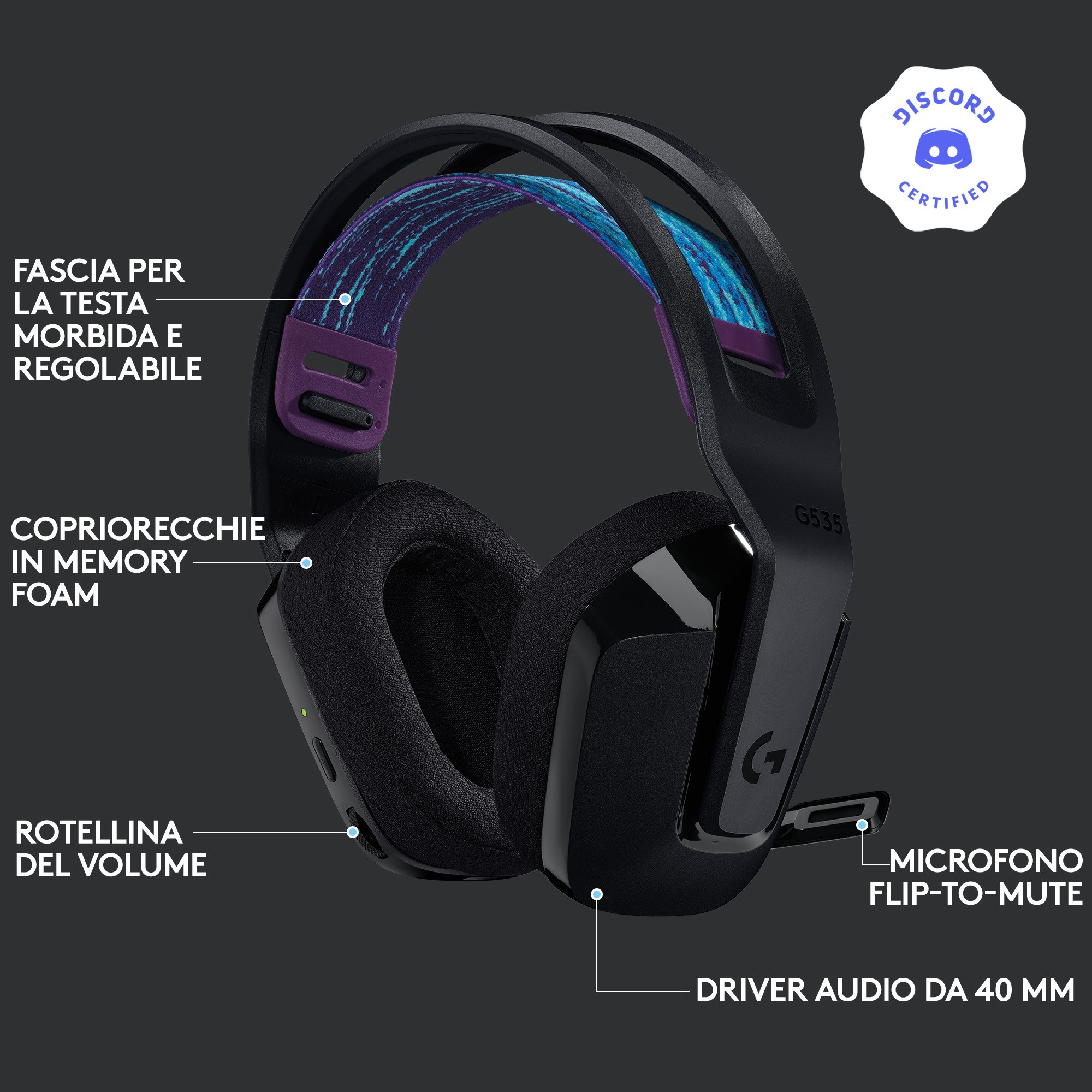 Logitech G G535, G535 Headset, Wireless, Gaming, 20 - 20000 Hz, 236 g, Auricolare, Nero