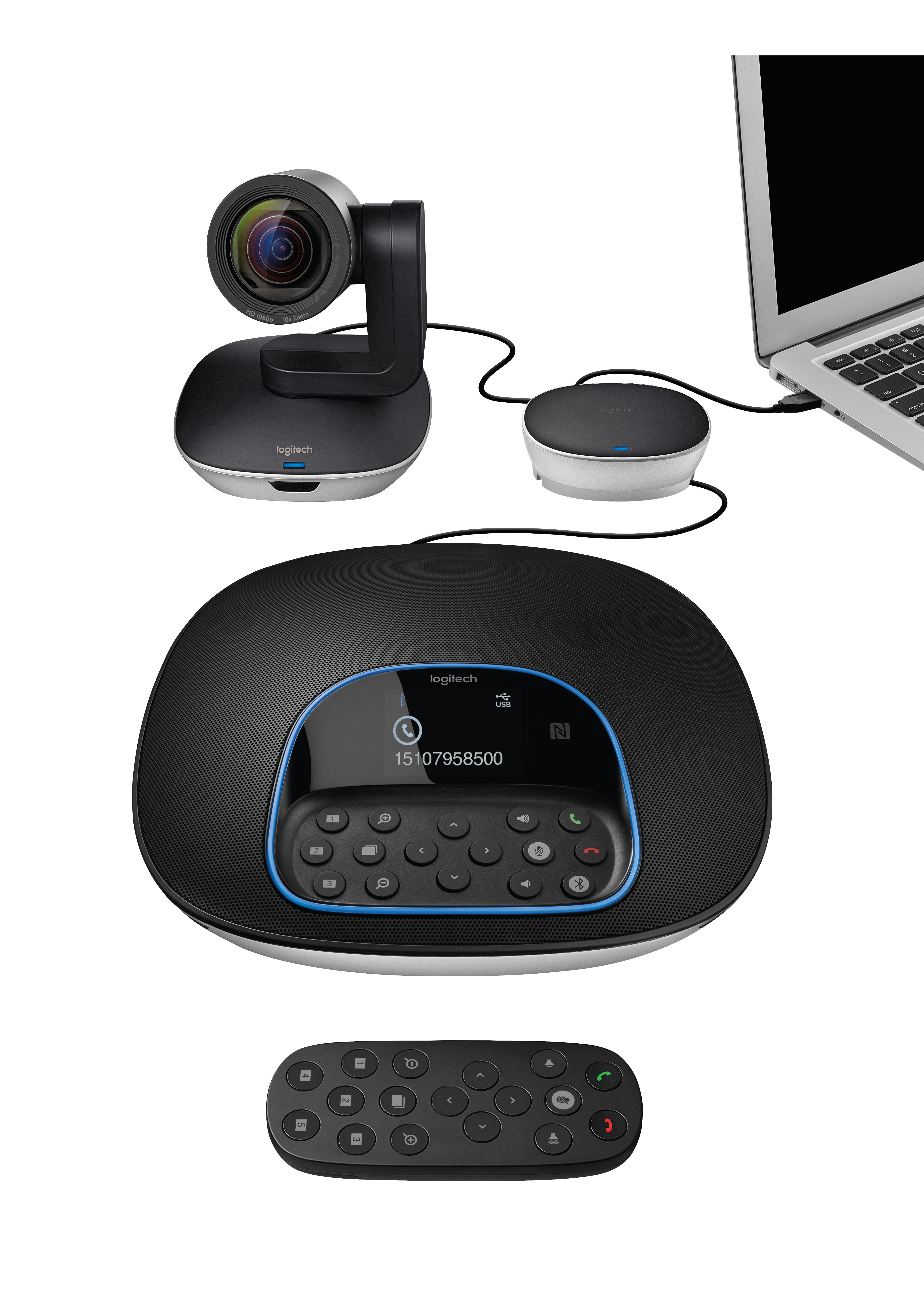 Logitech Group. Tipo di prodotto: Sistema di videoconferenza di gruppo. Tipologia HD: Full HD, Modalità video supportate: 1080p, Frequenza massima dei fotogrammi: 30 fps. Angolo di campo visivo: 90°, Zoom digitale: 10x. Bluetooth, Colore del prodotto: Nero, Grigio