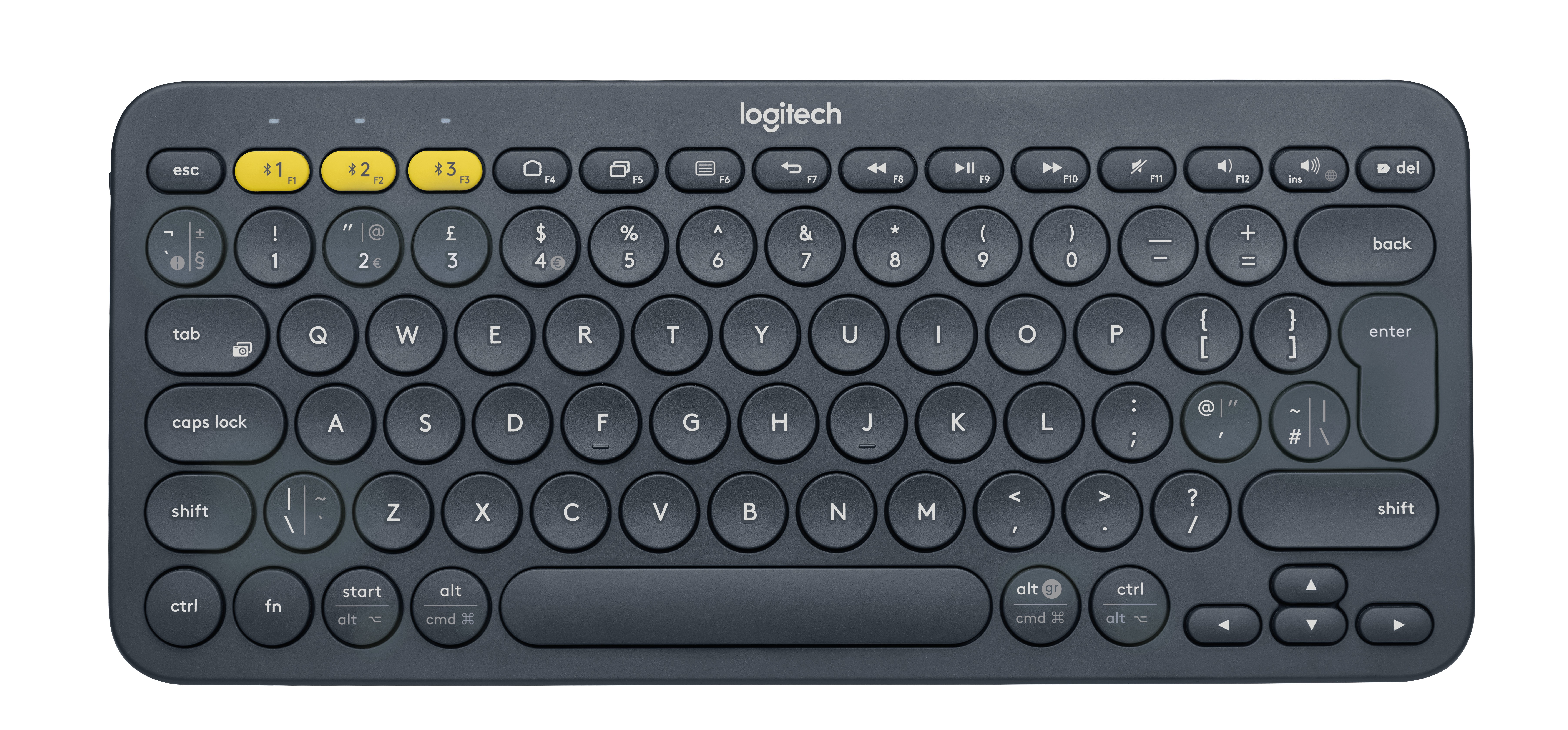 Logitech K380 Multi-Device. Fattore di forma tastiera: Mini. Stile tastiera: Dritto. Tecnologia di connessione: Wireless, Interfaccia dispositivo: Bluetooth, Struttura tastiera: QWERTY, Utilizzo raccomandato: Universale. Colore del prodotto: Grigio