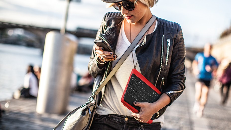 KEYS-TO-GO è semplicissima da connettere ad iPhone, iPad, AppleTV e altro ancora. Si configura in pochi secondi con connessione Bluetooth®, così puoi continuare a inviare messaggi sul tuo telefono senza interruzioni. In alternativa, puoi trasformare rapidamente il tuo tablet in un laptop e aggiornare il tuo blog da un caffè. Puoi anche goderti tutto il divertimento del media center senza alzarti dalla tua comoda poltrona.
