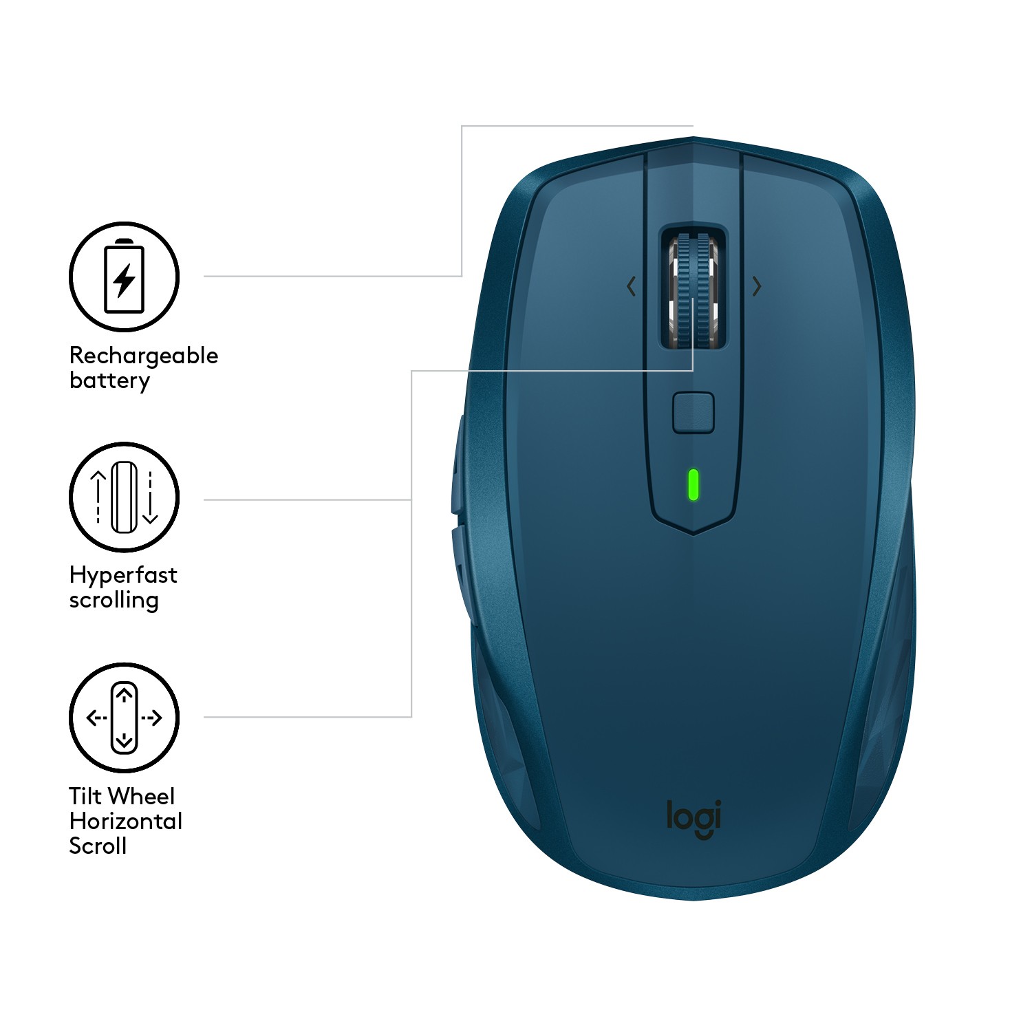 Connetti MX Anywhere 2S utilizzando il ricevitore Logitech Unifying o la tecnologia Bluetooth ® a basso consumo energetico. Grazie alla tecnologia Logitech Easy-Switch ⢠è possibile associare fino a tre dispositivi e passare da uno all'altro in tutta semplicità , premendo un pulsante.