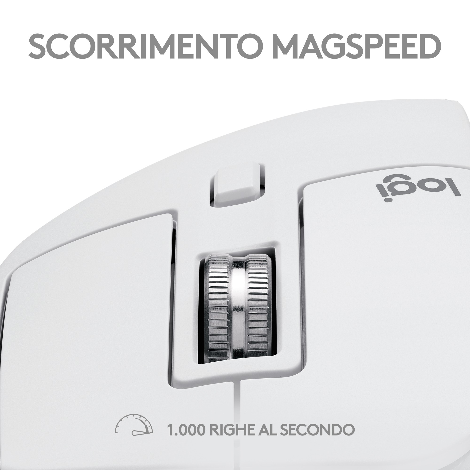 Logitech MX Master 3S for Mac, Mano destra, Laser, Bluetooth, 8000 DPI, Argento, Bianco
