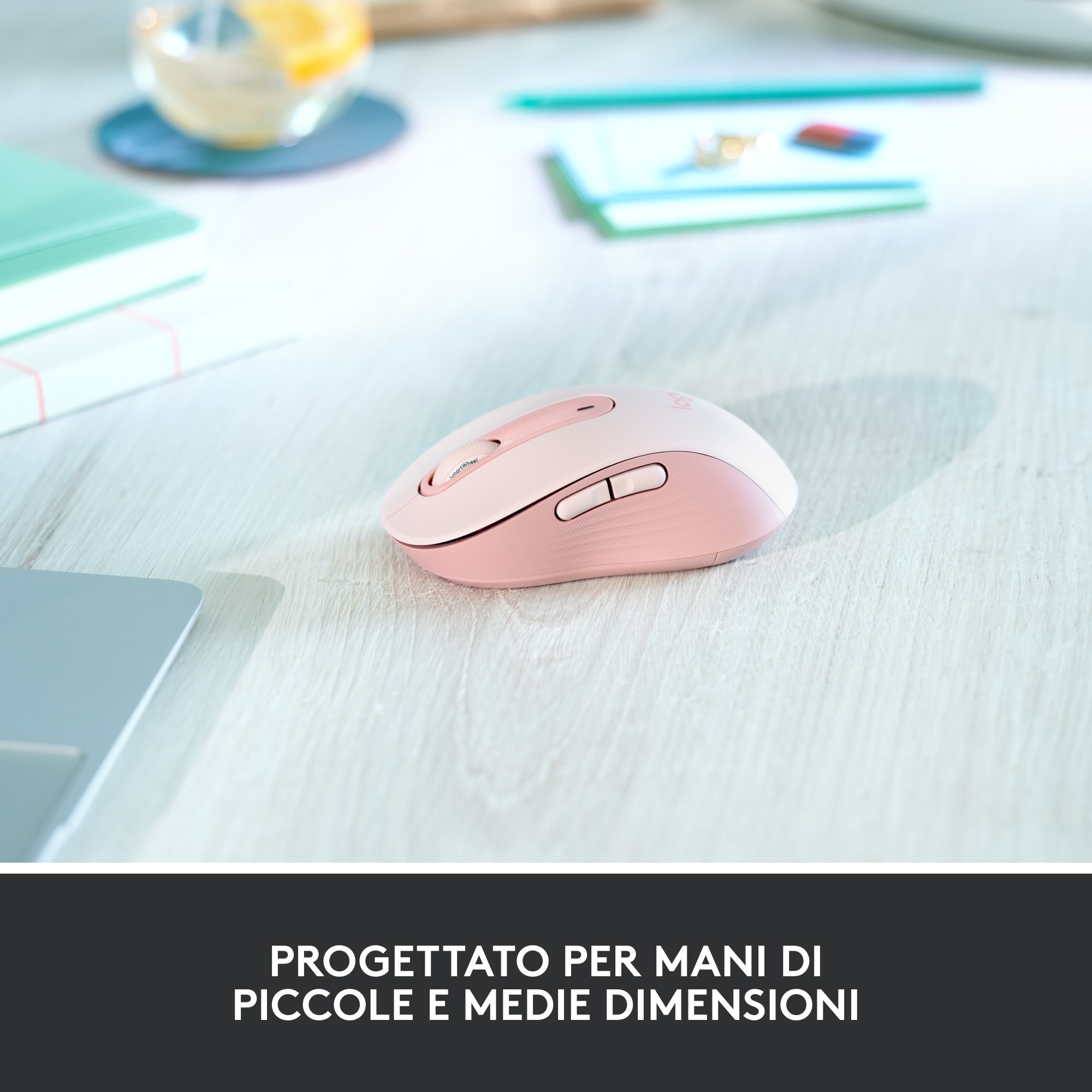 Logitech Signature M650, Mano destra, Ottico, Bluetooth, 4000 DPI, Rosa