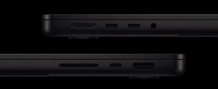 • SI CONNETTE A TUTTO – MacBook Pro 16" ha tre porte Thunderbolt 5, una porta di ricarica MagSafe 3, uno slot SDXC card, una porta HDMI e un jack per cuffie. Inoltre il chip M4 Pro ti permette di collegare fino a due monitor esterni, e il chip M4 Max fino a quattro.