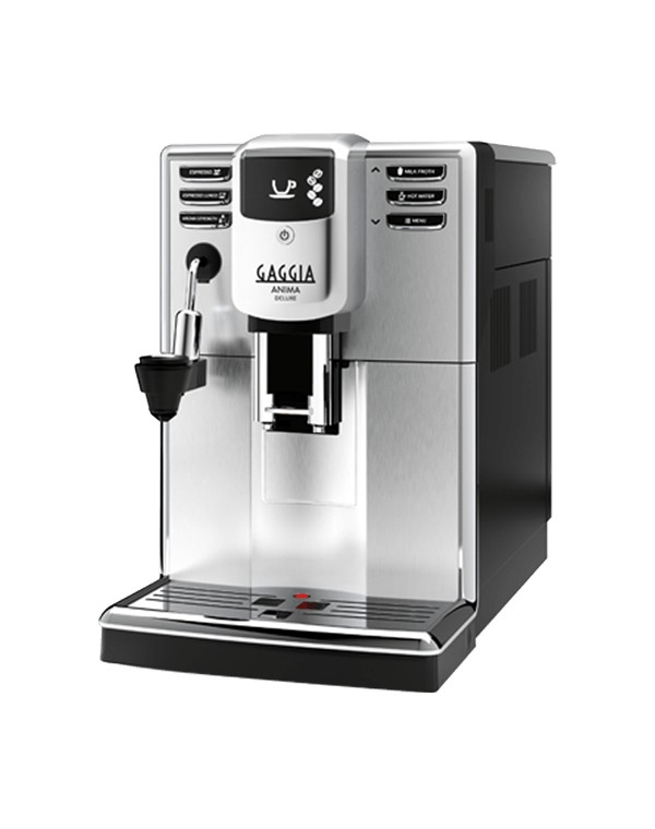 Gaggia Anima Deluxe. Tipo di prodotto: Macchina per espresso, Tipologia macchina del caffé: Automatica, Capacità tanica acqua: 1,8 L, Tipologia di caffè utilizzato: Chicchi di caffè, Vaschetta per caffè preparato: Tazza, Capacità in tazze: 1 tazze, Macinatore integrato. Tipo di display: LCD. Potenza: 1850 W. Colore del prodotto: Nero, Acciaio inossidabile