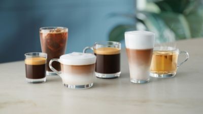 Gusta 5 delle ricette a base di caffè più diffuse, tra cui il classico espresso, il normale caffè nero, il cappuccino, il latte macchiato, il caffè freddo con crema, aroma e temperatura perfetti. Inoltre, è disponibile acqua calda per il tè. Il nostro esclusivo sistema di erogazione estrae perfettamente l'aroma dei chicchi a una minore velocità e a una temperatura più bassa. Aggiungi i cubetti di ghiaccio alla tua bevanda e gusta un delizioso caffè freddo senza rinunciare all'intensità del caffè.