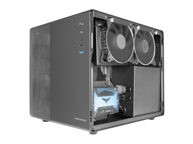 Il case MC-MPRO offre ampio spazio interno per l'installazione di componenti ad alte prestazioni. Supporta schede madri MicroATX e Mini-ITX, fino a 3 SSD da 2,5" e 2 HDD da 3,5". Grazie all'efficiente gestione interna dei cavi, la configurazione rimane ordinata e ben organizzata. Inoltre, può ospitare VGA fino a 340 mm di lunghezza e dissipatori per CPU fino a 157 mm di altezza.
