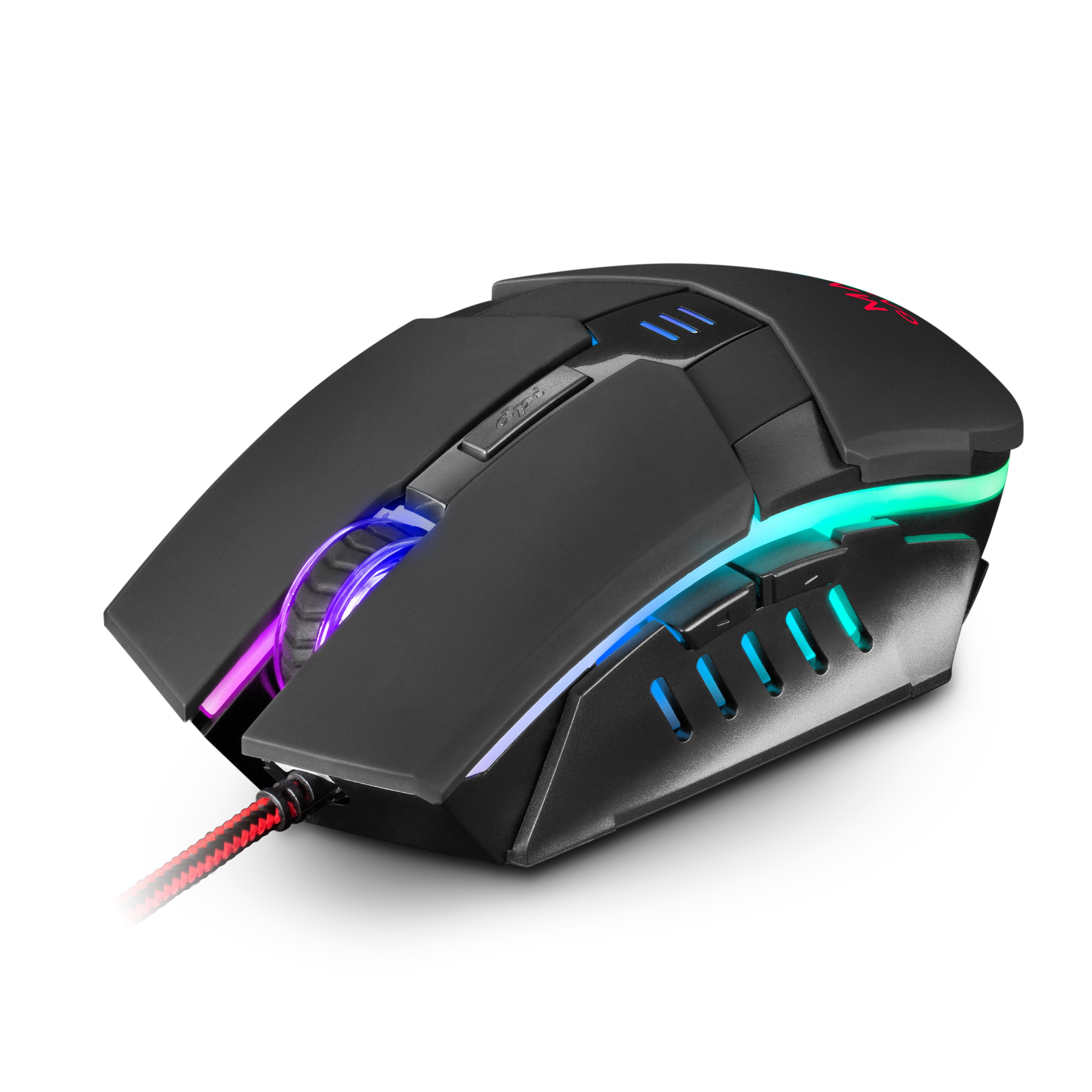 Mars Gaming MM116. Fattore di forma: Ambidestro. Tecnologia di rilevamento del movimento: Ottico, Interfaccia dispositivo: USB tipo A, Risoluzione movimento: 3200 DPI, Tipo di pulsanti: Tasti premuti, Numero di tasti: 6, Tipo di scorimmento: Rotella. Alimentazione: Cavo. Colore del prodotto: Nero