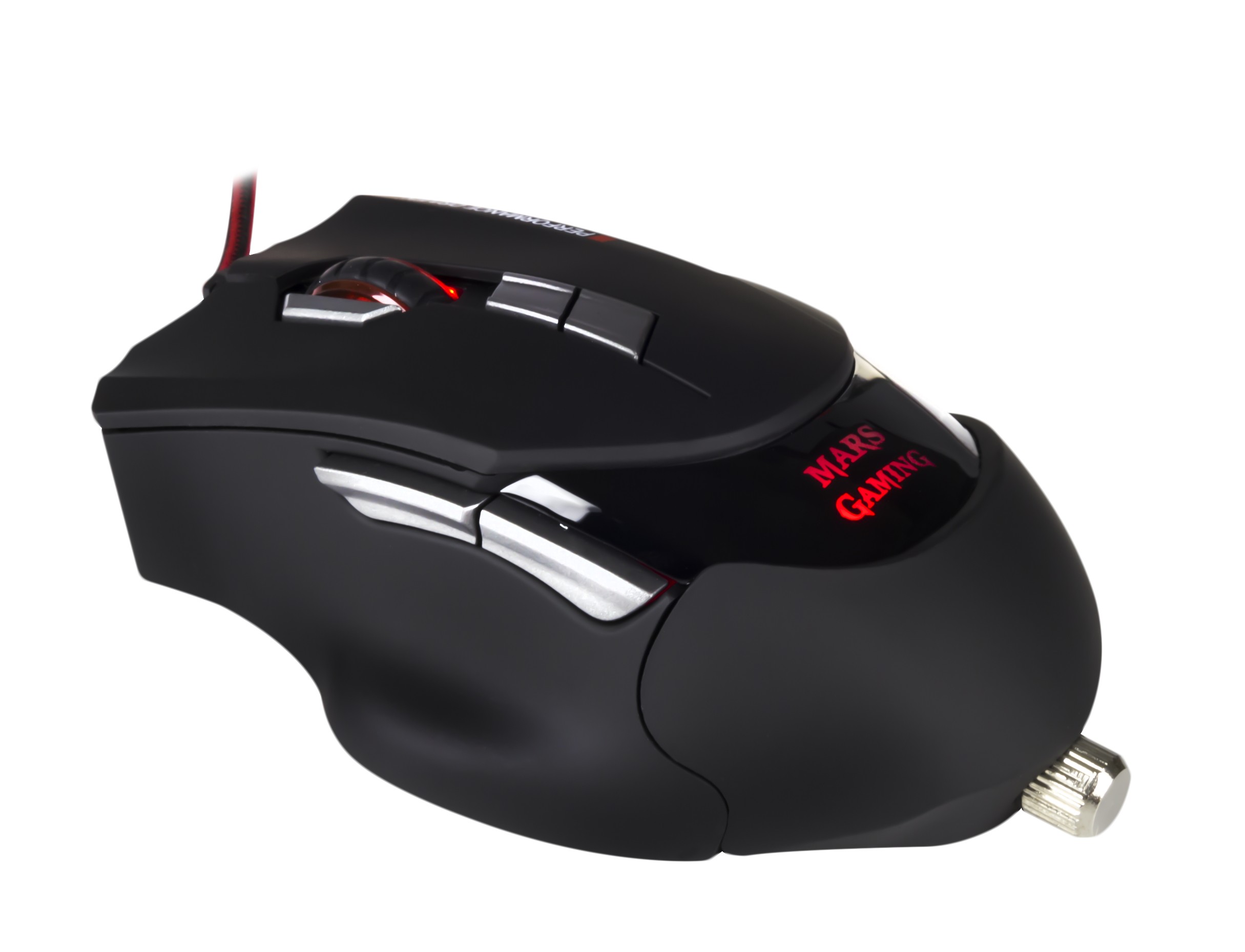 Mars Gaming MM3. Fattore di forma: Mano destra. Tecnologia di rilevamento del movimento: Laser, Risoluzione movimento: 16400 DPI, Tipo di pulsanti: Tasti premuti, Numero di tasti: 10, Tipo di scorimmento: Rotella. Colore laser: Rosso. Alimentazione: Cavo. Colore del prodotto: Nero