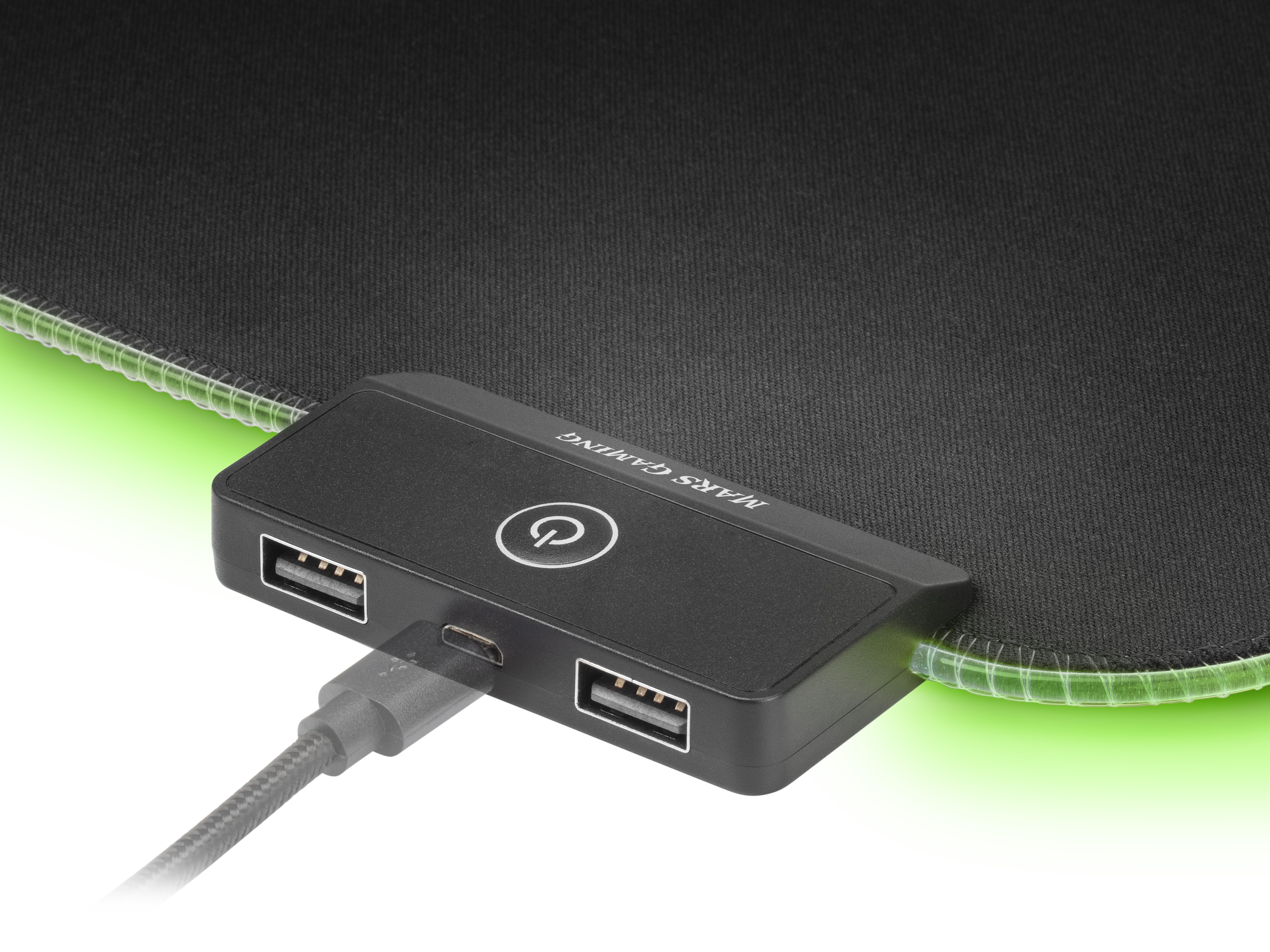 Mars Gaming MMPRGB2, Nero, Monocromatico, Gomma, Alimentazione USB, Barra appoggiaferro antiscivolo, Tappetino per mouse per gioco da computer