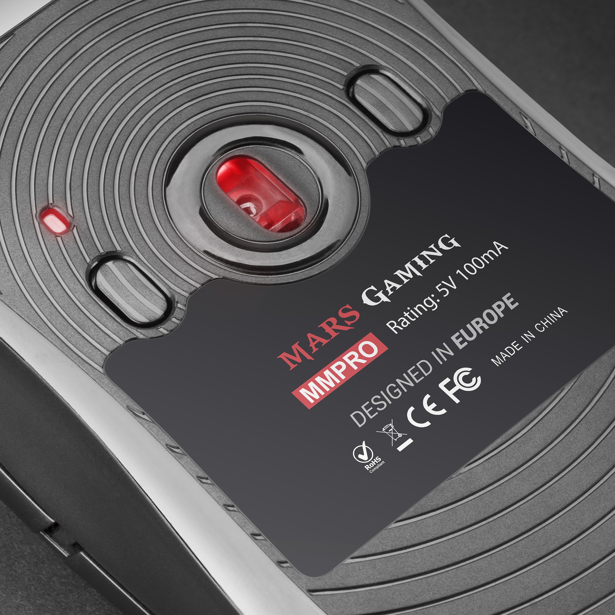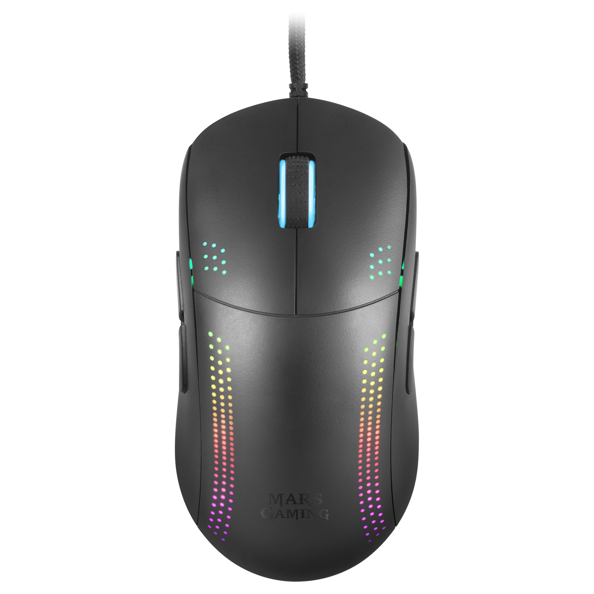 Mars Gaming MMPRO. Fattore di forma: Mano destra. Tecnologia di rilevamento del movimento: Ottico, Interfaccia dispositivo: USB tipo A, Risoluzione movimento: 32000 DPI, Numero di tasti: 9, Tipo di scorimmento: Rotella. Alimentazione: Cavo. Colore del prodotto: Nero