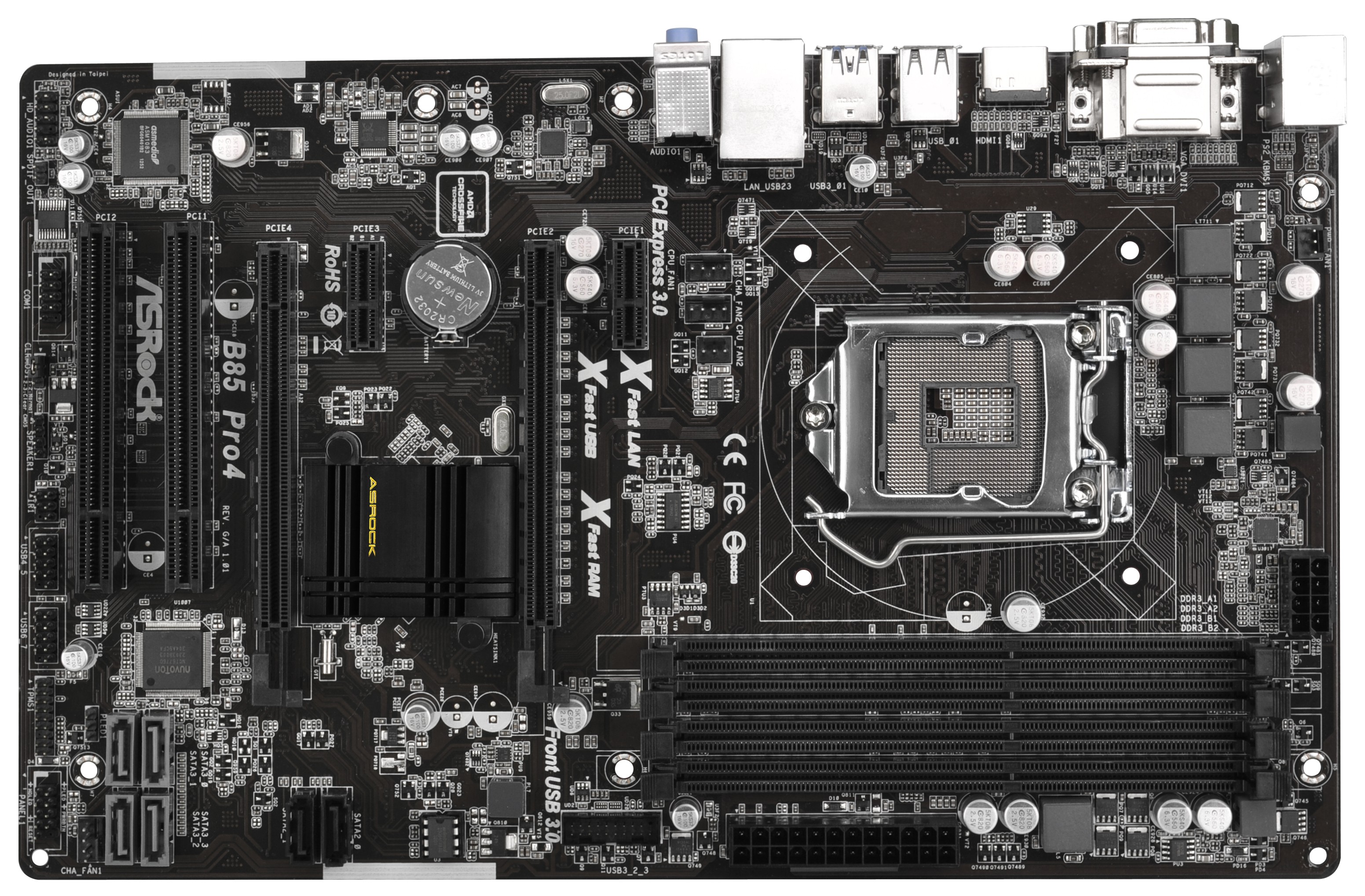 Asrock B85 Pro4. Tipi di memoria supportati: DDR3-SDRAM, tipo di slot di memoria: DIMM, Velocità di memoria supportate: 1066,1333,1666 MHz. Produttore processore: Intel, Processori compatibili: Intel® Celeron®, Intel® Pentium®, Presa per processore: LGA 1150 (Socket H3). Interfacce dell'unità di archiviazione supportate: Seriale ATA II, Serial ATA III. Controller LAN: Intel I217V, Tipo di interfaccia Ethernet: Fast Ethernet, Gigabit Ethernet. Componente per: PC, Famiglia di chipset per scheda madre: Intel, Chipset scheda madre: Intel B85